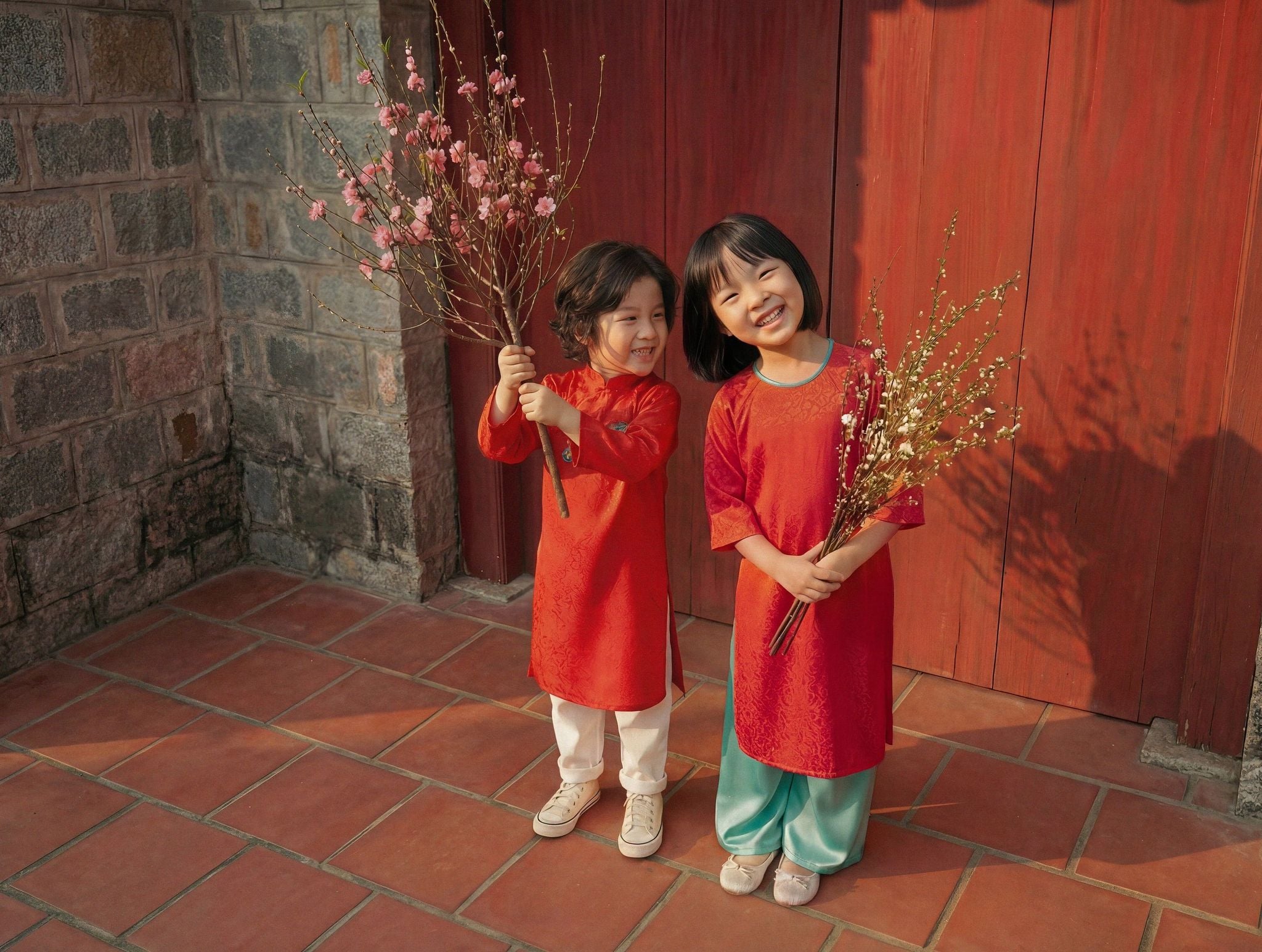 Ba mẹ có thể cho bé mặc áo dài Xuân Hội khi đi chúc Tết, lễ chùa hoặc họp mặt gia đình. Áo dài dễ dàng phối cùng quần cotton mềm, giày vải hoặc giày bệt nhẹ để bé di chuyển thoải mái hơn.