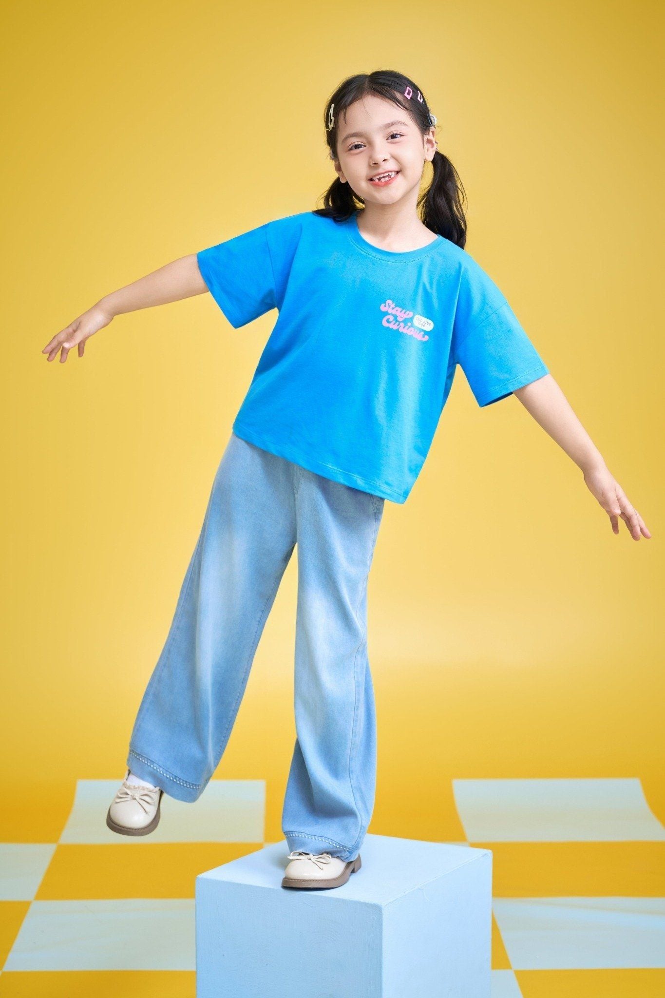 Áo thun ngắn tay vốn là item “must-have” trong tủ đồ trẻ em. Khi kết hợp với quần dài co giãn, set đồ này không chỉ giúp bé giữ ấm đôi chân trong tiết trời se lạnh mà còn mang lại cảm giác gọn gàng, năng động. Điểm cộng lớn là outfit này có thể ứng dụng trong nhiều hoàn cảnh: đi học, đi chơi công viên hay tham gia các buổi dã ngoại. Ba mẹ chỉ cần thêm một chiếc khăn choàng mỏng hoặc bao tay xinh xắn là bé đã đủ ấm áp vào sáng sớm.