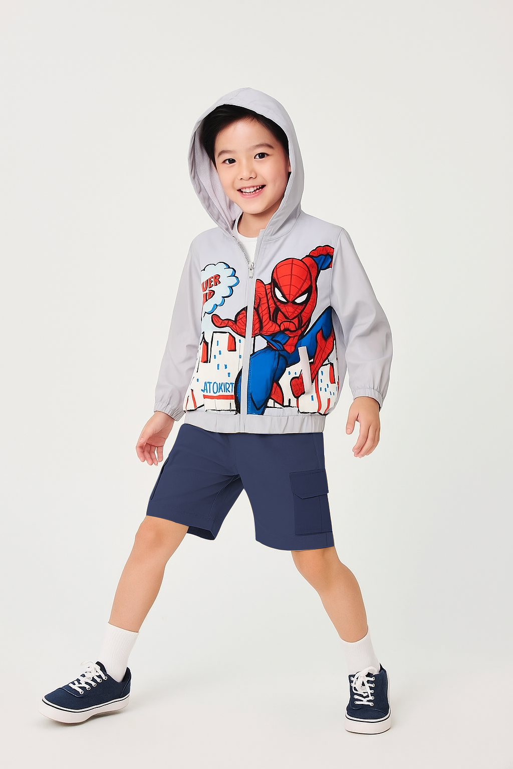 Đây là lựa chọn cực kỳ “ăn điểm” cho cả bé trai lẫn bé gái. Áo khoác gió không chỉ mang lại vẻ ngoài năng động, cá tính mà còn giúp bảo vệ bé trong những buổi sáng hoặc chiều tối se lạnh. Khi thời tiết ấm hơn vào ban ngày, bé có thể dễ dàng cởi ra mà không bị bí bách. Kết hợp khoác gió với quần short là sự cân bằng hoàn hảo: phần thân trên được giữ ấm vừa đủ, còn đôi chân được thoải mái vận động. Đây là outfit lý tưởng cho những buổi đi dạo, đi học thêm hay tham gia hoạt động ngoại khóa.