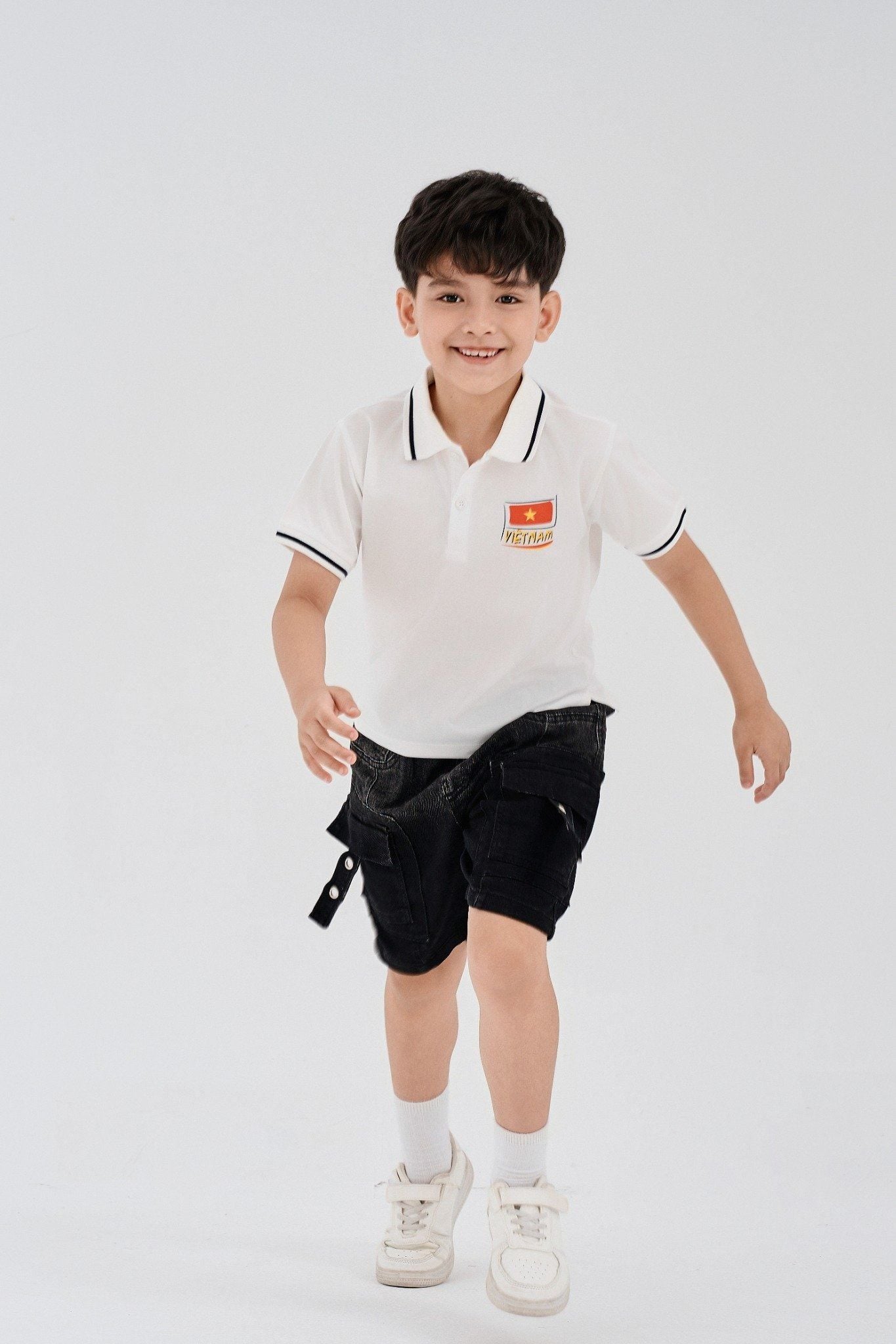 Áo polo luôn mang lại vẻ ngoài lịch sự, chỉn chu hơn áo thun thông thường nhưng vẫn giữ được sự thoải mái. Với chất vải dày dặn vừa phải, áo polo là lựa chọn lý tưởng cho thời tiết giao mùa khi trời không quá lạnh nhưng cũng không còn oi nóng. Khi mix cùng quần short vải kaki hoặc thô dày, bé vừa có thể thoải mái vận động, vừa trông năng động, gọn gàng khi đến lớp. Outfit này đặc biệt phù hợp cho bé trai thích sự khỏe khoắn, nhưng vẫn đủ lịch sự để diện đi học hoặc tham gia sự kiện ở trường.