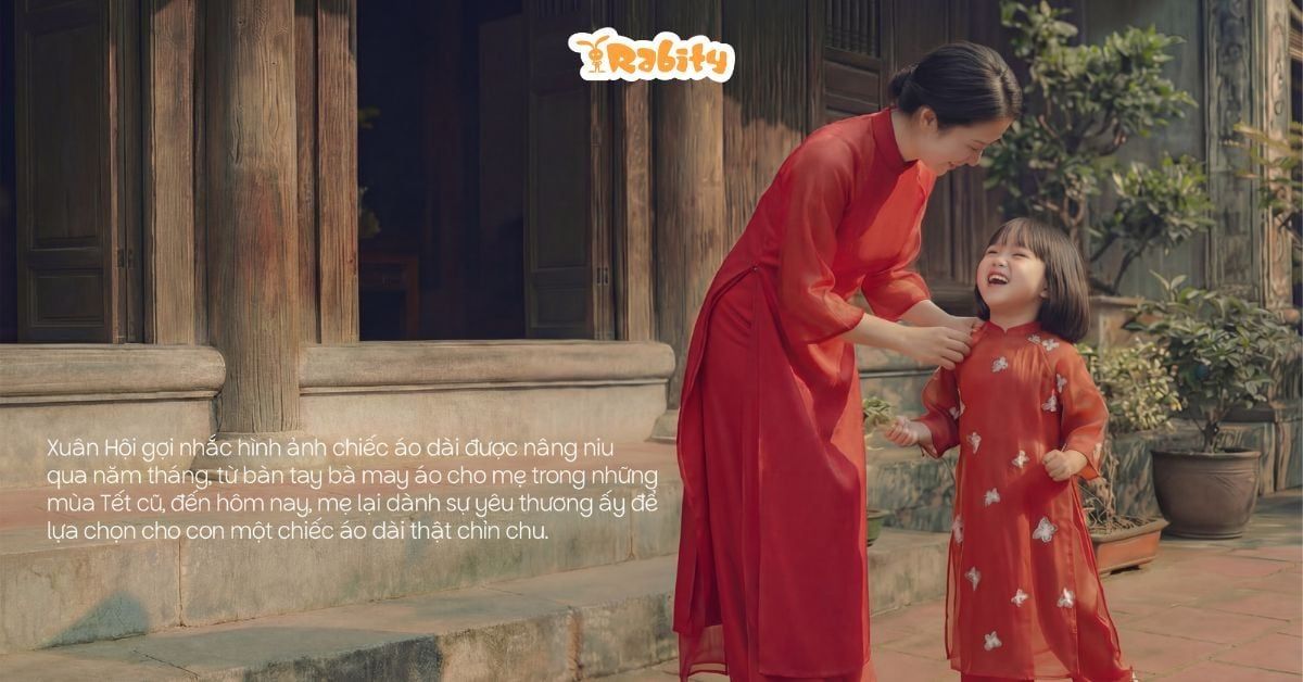 BST Xuân Hội của Rabity được xây dựng theo hướng đó, với thiết kế gọn gàng, tinh tế, hạn chế chi tiết rườm rà nhưng vẫn giữ được tinh thần Tết. Nhờ vậy, bé mặc đẹp khi chúc Tết, còn ba mẹ thì yên tâm vì trang phục dễ giặt, dễ bảo quản và có thể tái sử dụng trong nhiều dịp sau Tết.