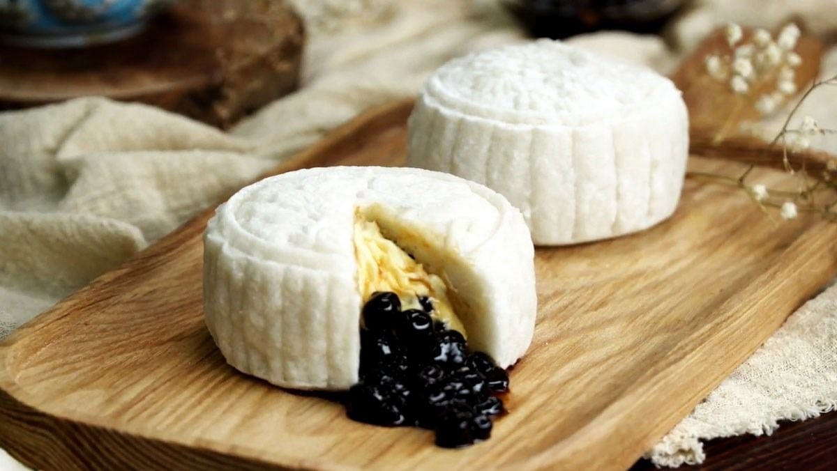 Lấy cảm hứng từ món trà sữa nổi tiếng, bánh trung thu vị trân châu đường đen mang đến trải nghiệm mới mẻ. Nhân bánh có vị ngọt béo của sữa, kết hợp với trân châu dai giòn tạo cảm giác vui miệng. Đây là loại bánh đặc biệt được giới trẻ yêu thích và săn đón trong những mùa Trung thu gần đây.