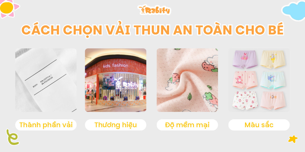 Khi chọn quần áo làm từ vải thun an toàn cho bé, phụ huynh cần lưu ý một số điểm sau: