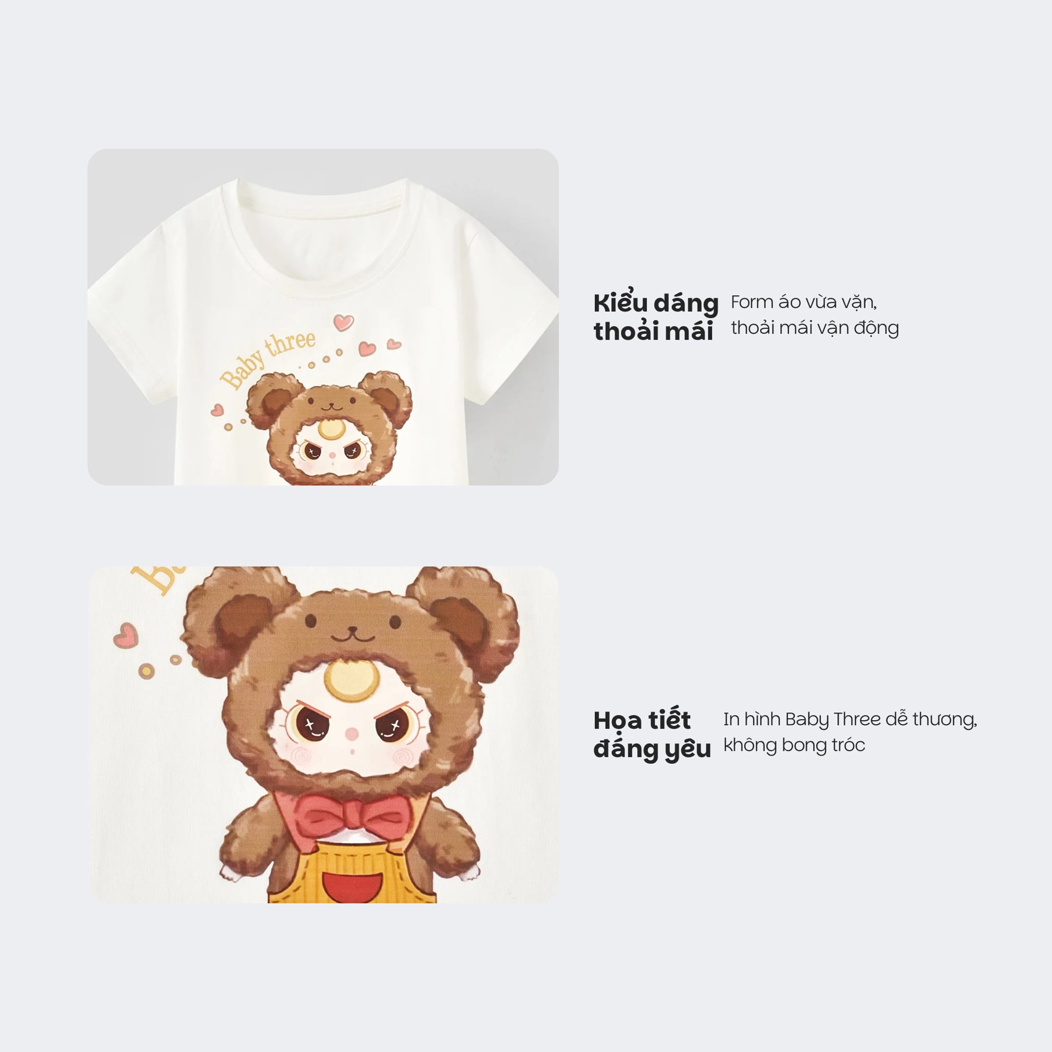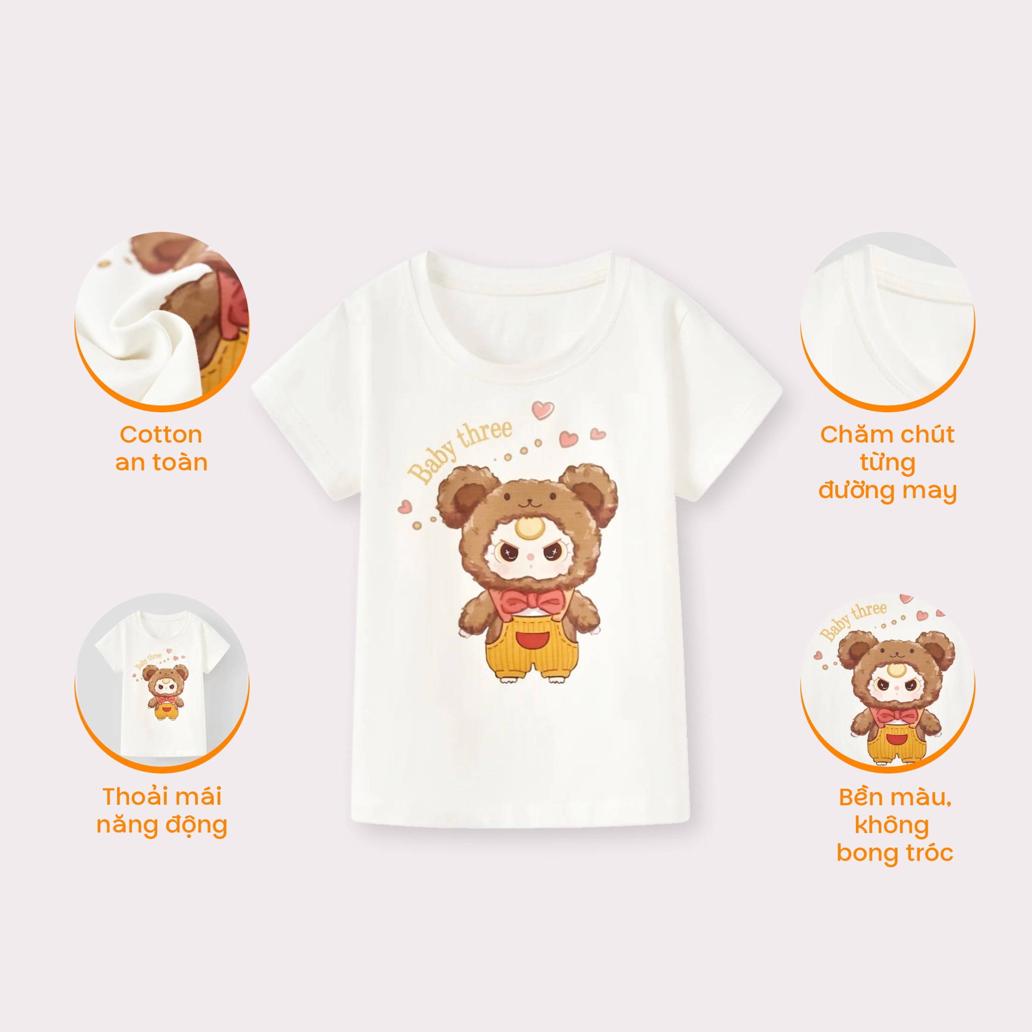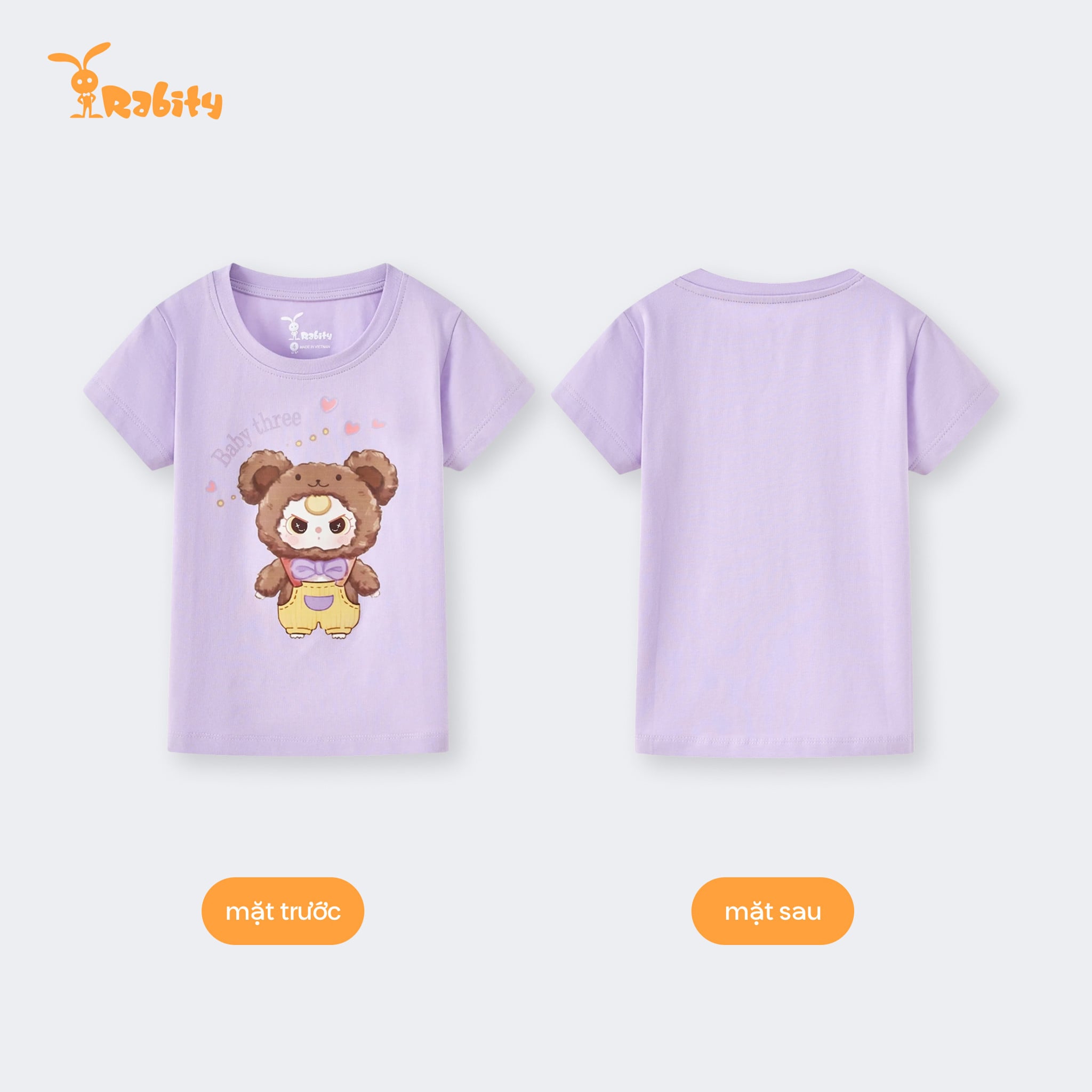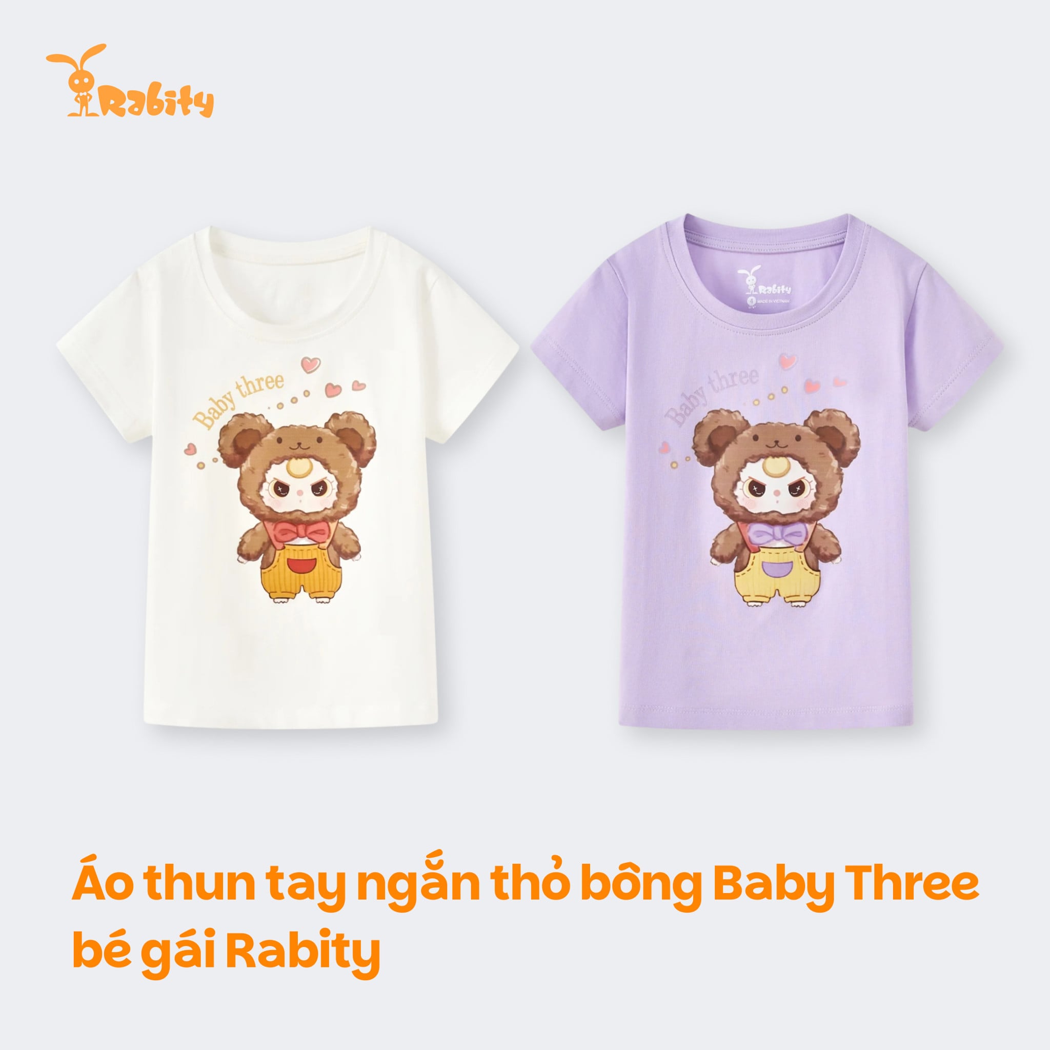 Áo thun tay ngắn thỏ bông Baby Three bé gái Rabity 900.092