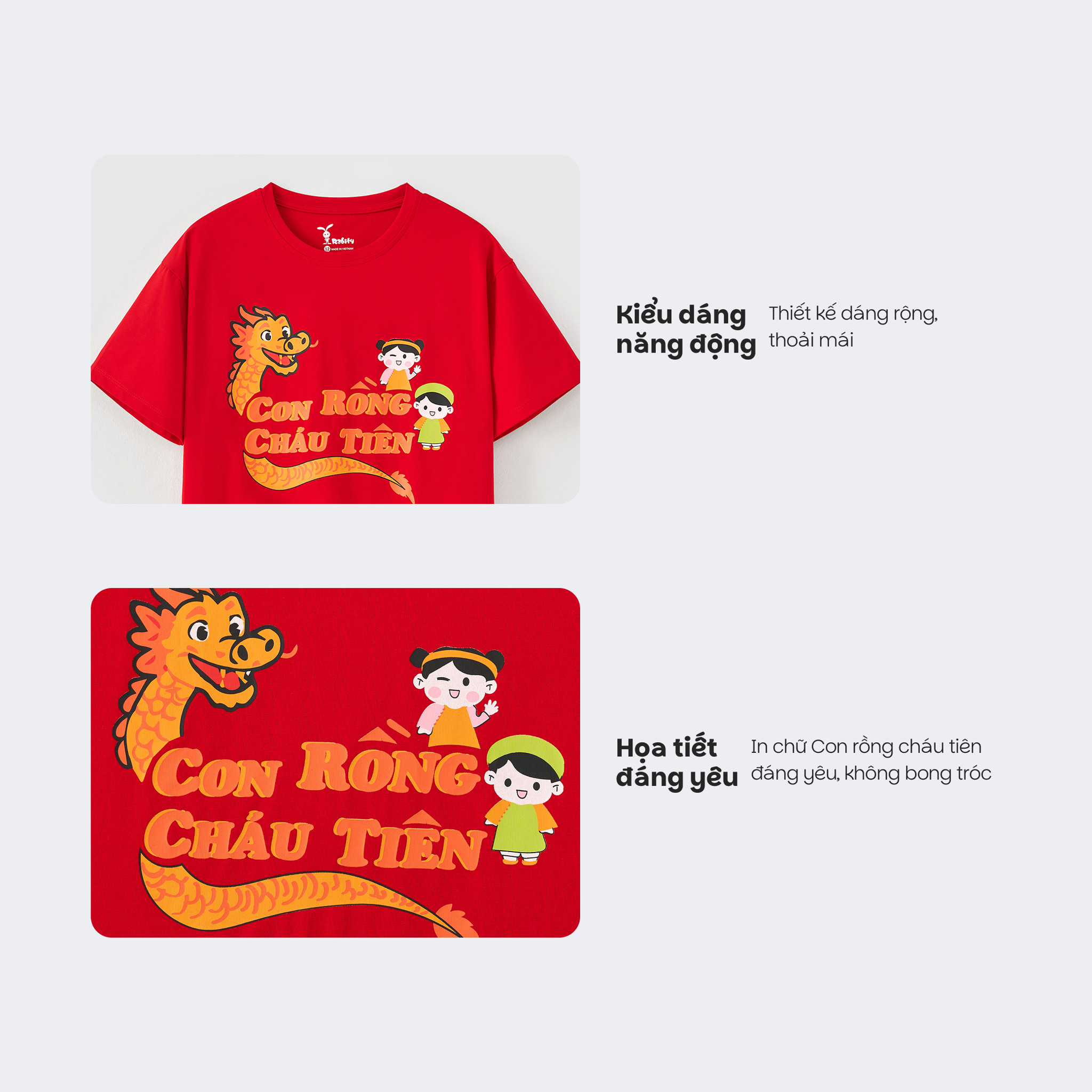 Thiết kế áo thun in chữ “Con Rồng Cháu Tiên” là lựa chọn ý nghĩa để bé thêm tự hào khi khoác lên mình nét đẹp văn hóa dân tộc. Không chỉ mang ý nghĩa đặc biệt, chiếc áo còn sở hữu chất liệu mềm mịn, dáng áo năng động, thoáng mát cho bé thỏa sức vui chơi mỗi ngày.
