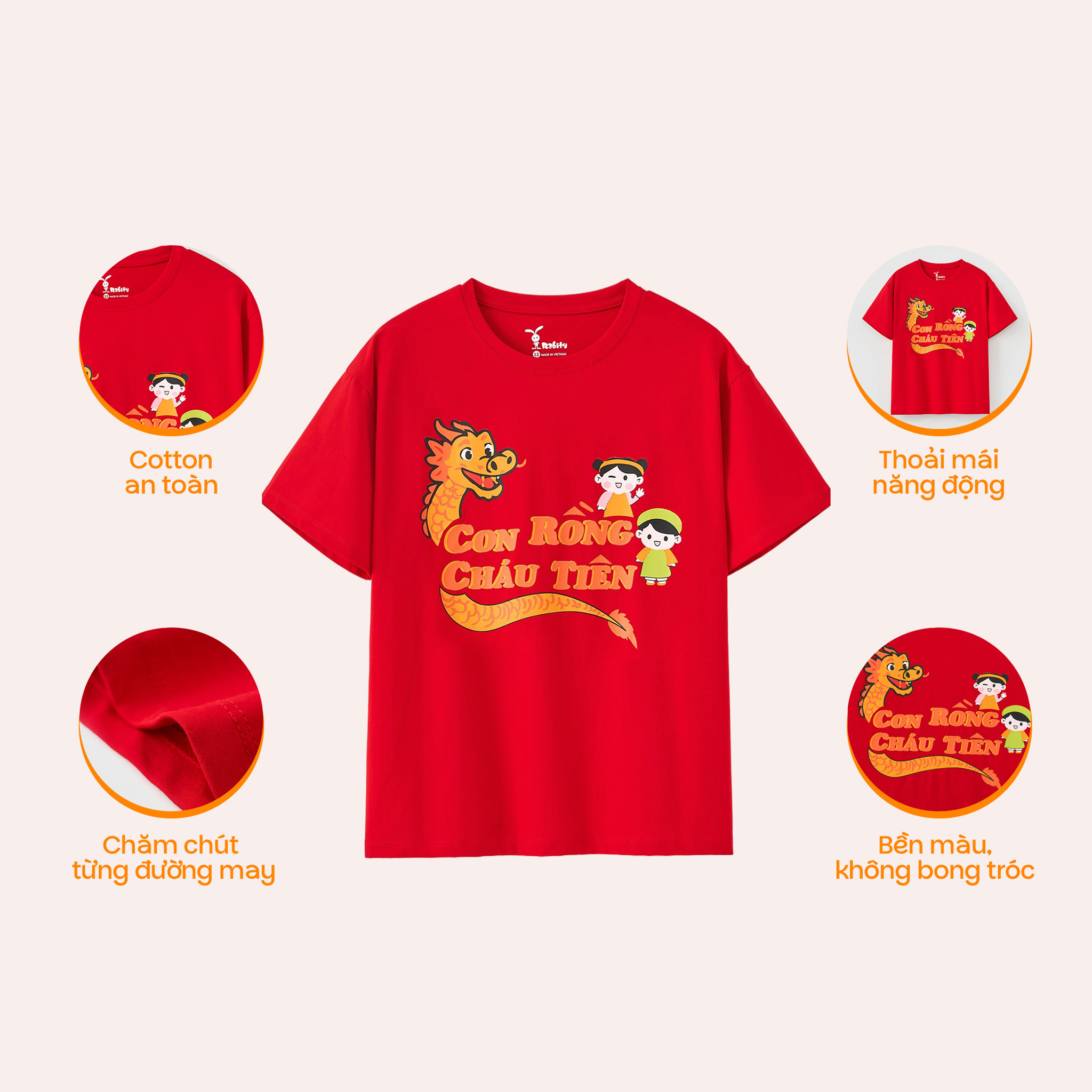 - Thông điệp gần gũi: Hình in dòng chữ “Con Rồng Cháu Tiên” không chỉ đáng yêu mà còn mang thông điệp giáo dục nhẹ nhàng. Mực in rõ nét, không bong tróc dù giặt máy và an toàn cho da bé.