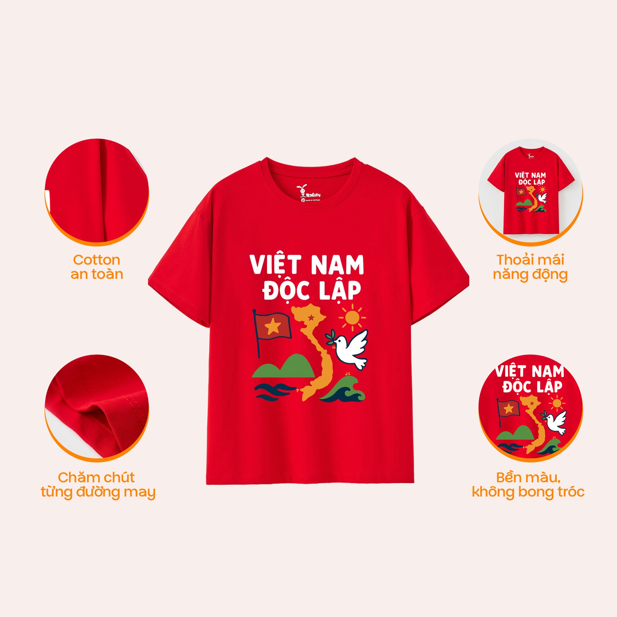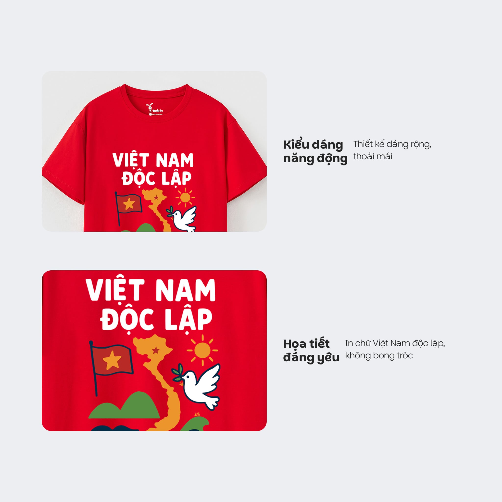[Độc quyền Online] Áo thun tay ngắn Việt Nam Độc Lập bé trai/bé gái Rabity 900.902