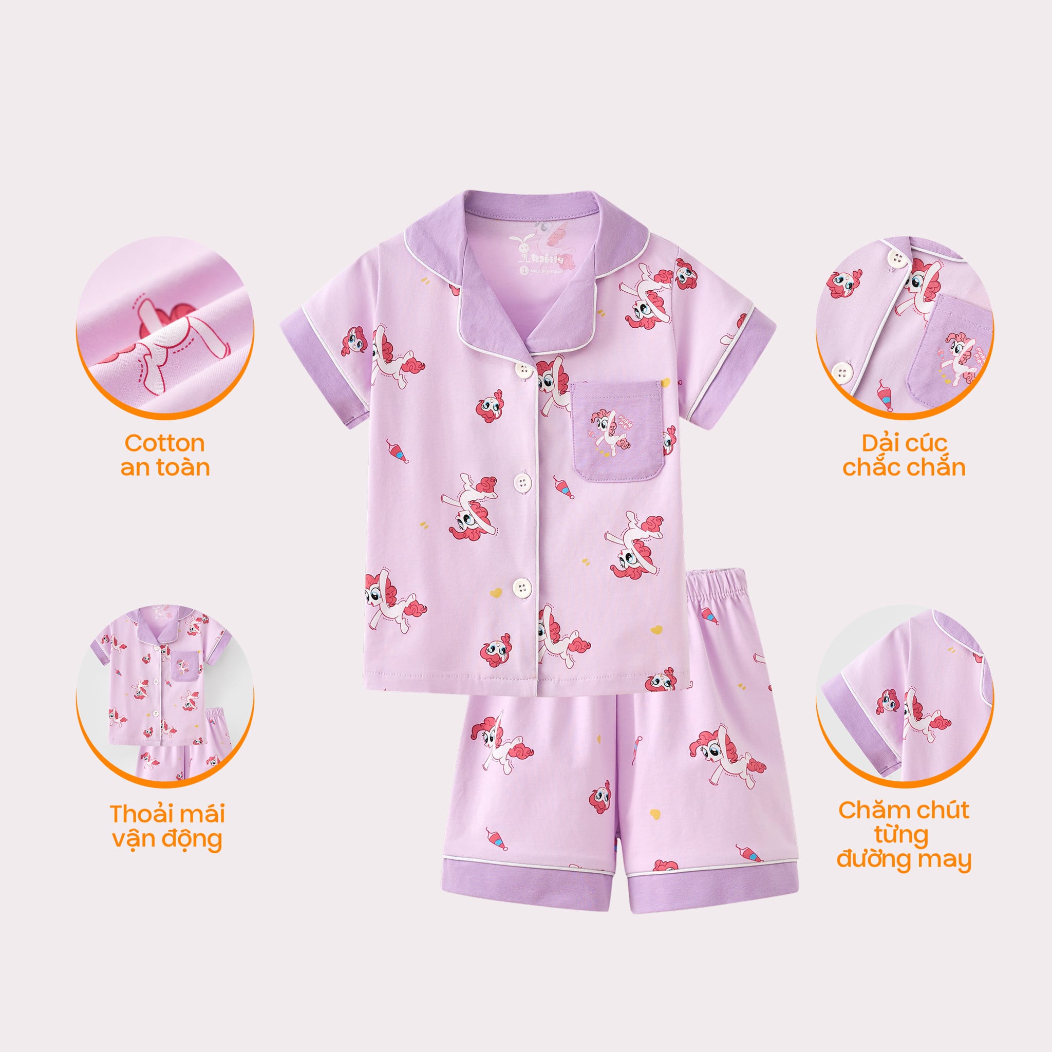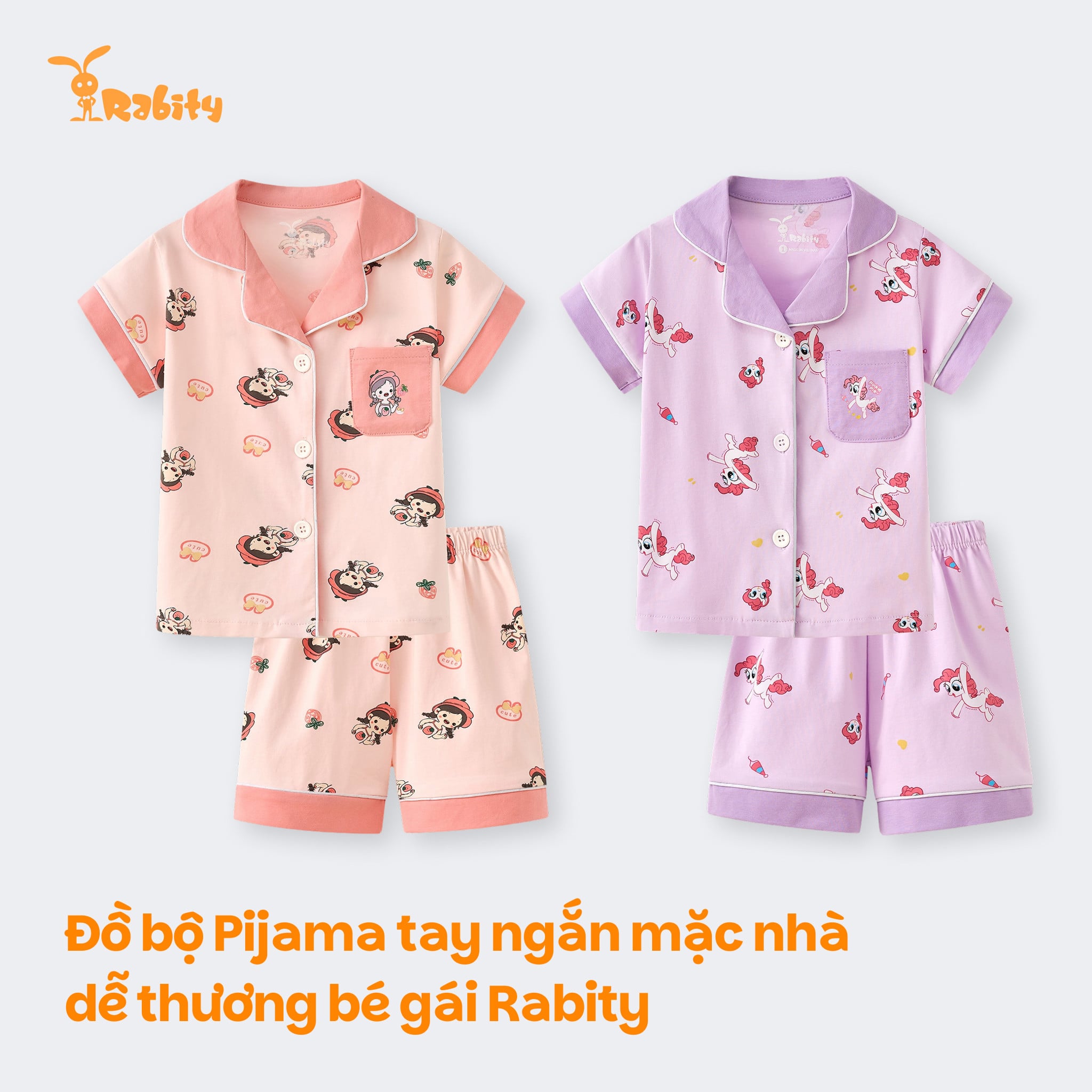 Đồ bộ Pijama tay ngắn mặc nhà dễ thương bé gái Rabity 962.014.015.016