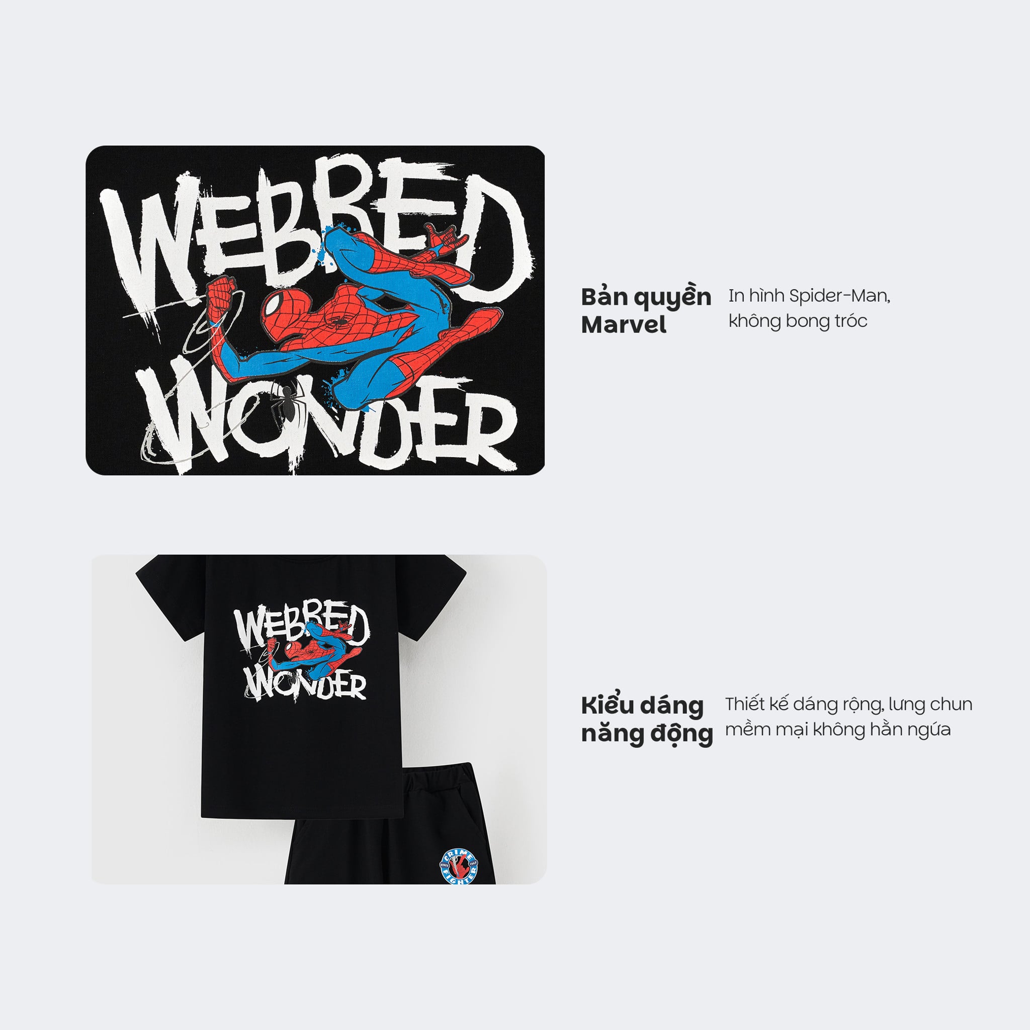 Đây là set đồ không thể thiếu trong tủ đồ của các "fan nhí" mê siêu anh hùng! Thiết kế dáng rộng dễ mặc, hình in Spider-Man cực chất cùng chất liệu cotton thoáng mát tạo nên bộ đồ thun bản quyền Marvel này vừa dễ thương, vừa năng động cho bé trai.
