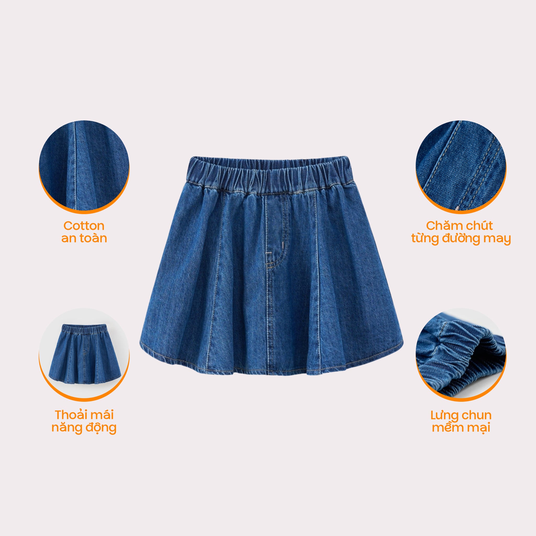 Chân váy jean ngắn xếp ly bé gái Rabity 955.028
