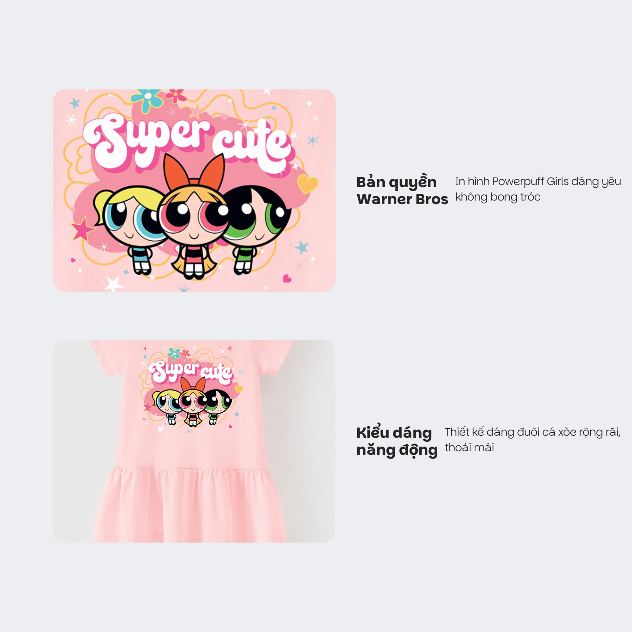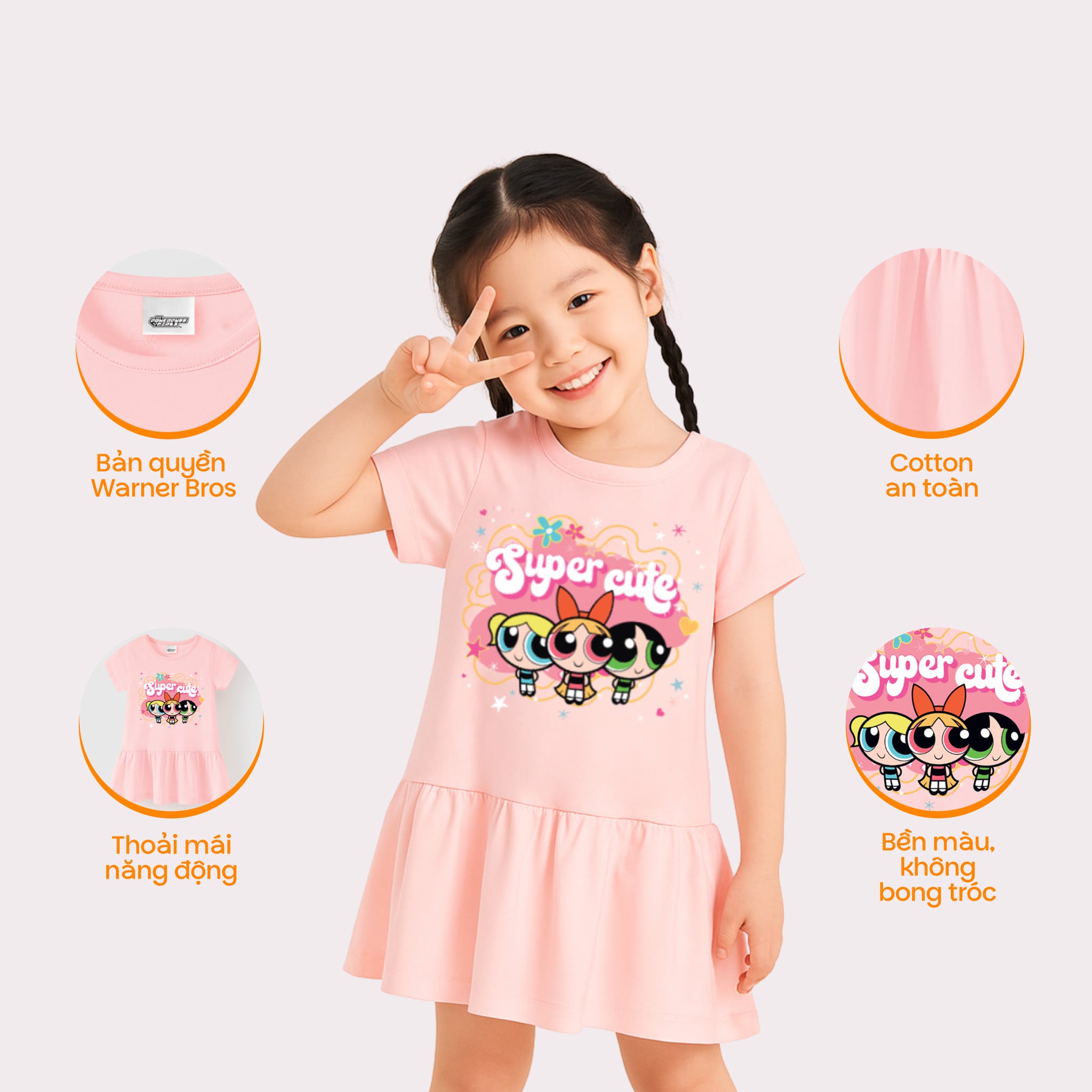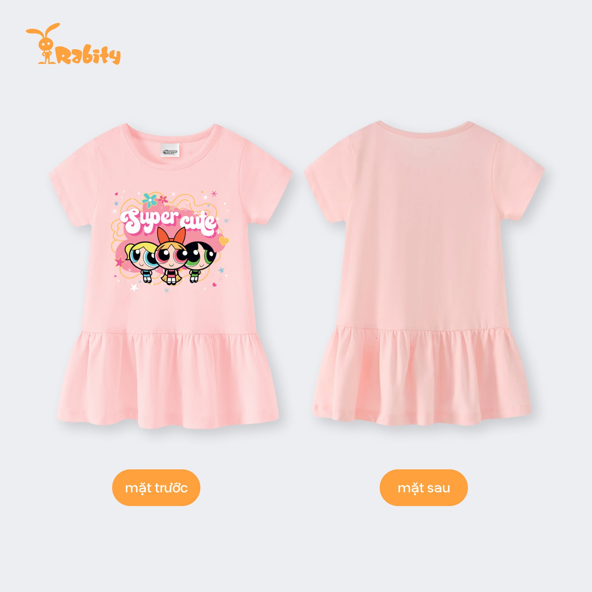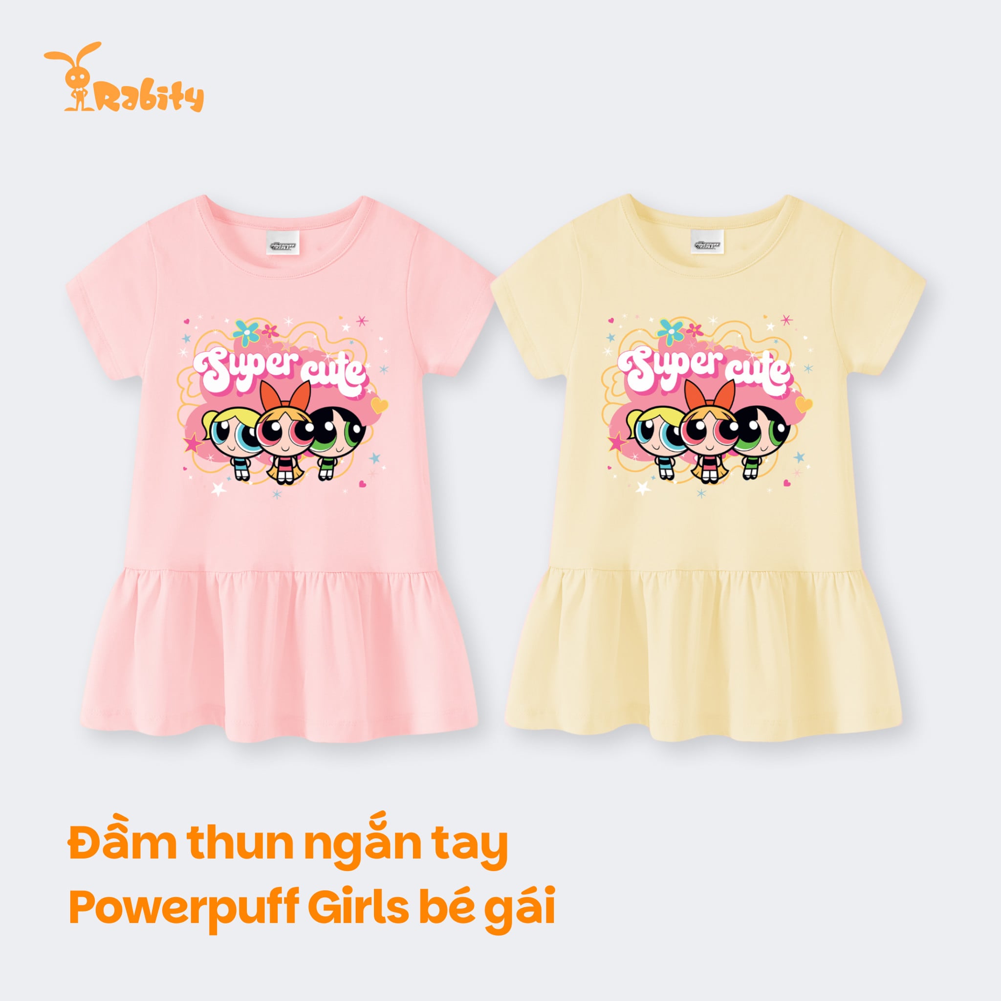 [Độc quyền Online] Đầm thun ngắn tay Powerpuff Girls bé gái Rabity 950.901