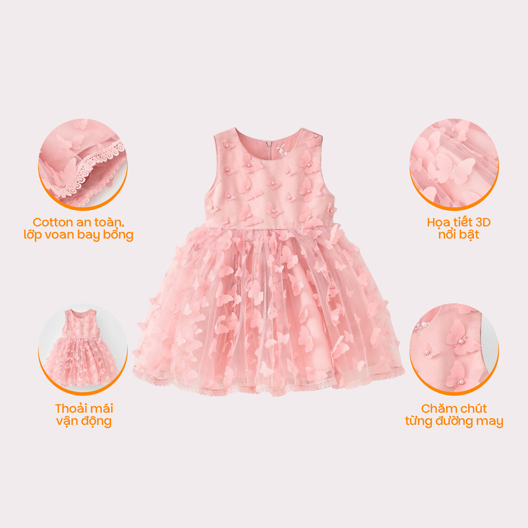 Đầm công chúa sát nách voan hoa bồng bềnh bé gái Rabity 953.037