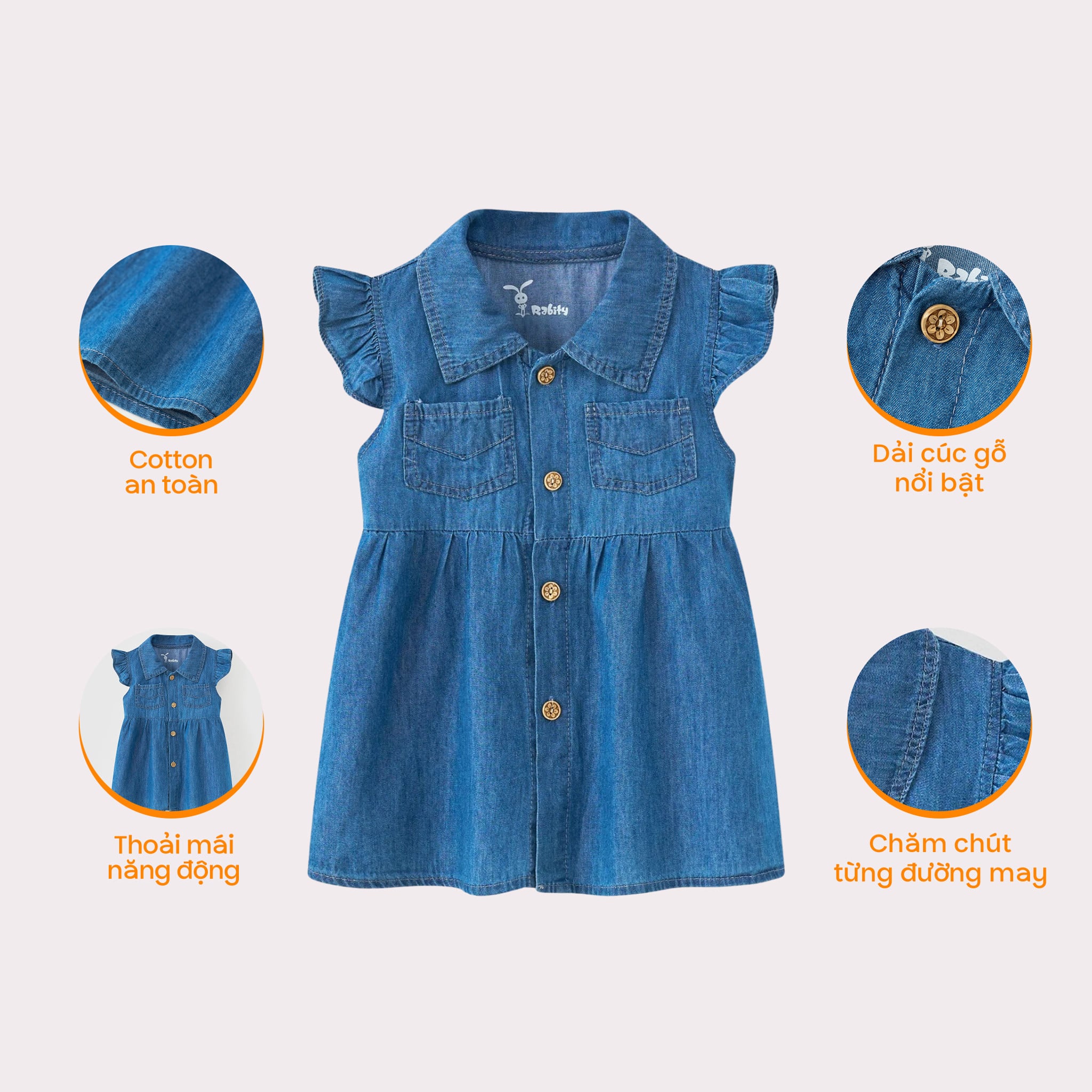 Đầm jeans tay cánh tiên vintage bé gái Rabity 950.078