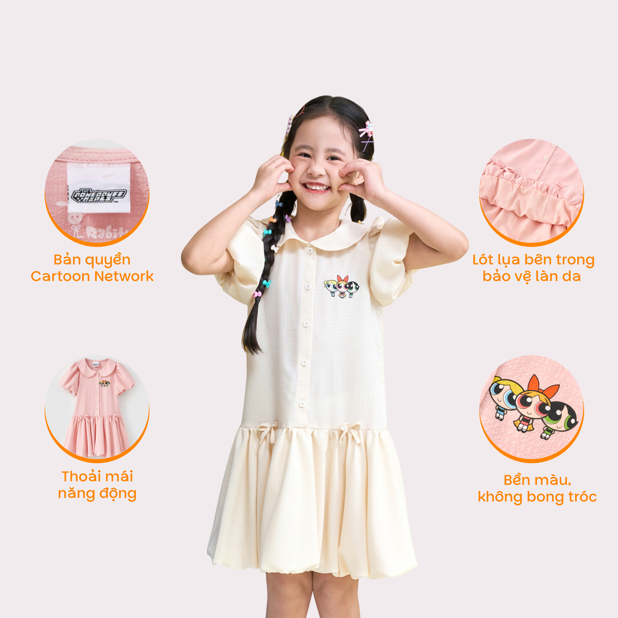 Đầm váy thô ngắn tay bé gái Rabity 150.002