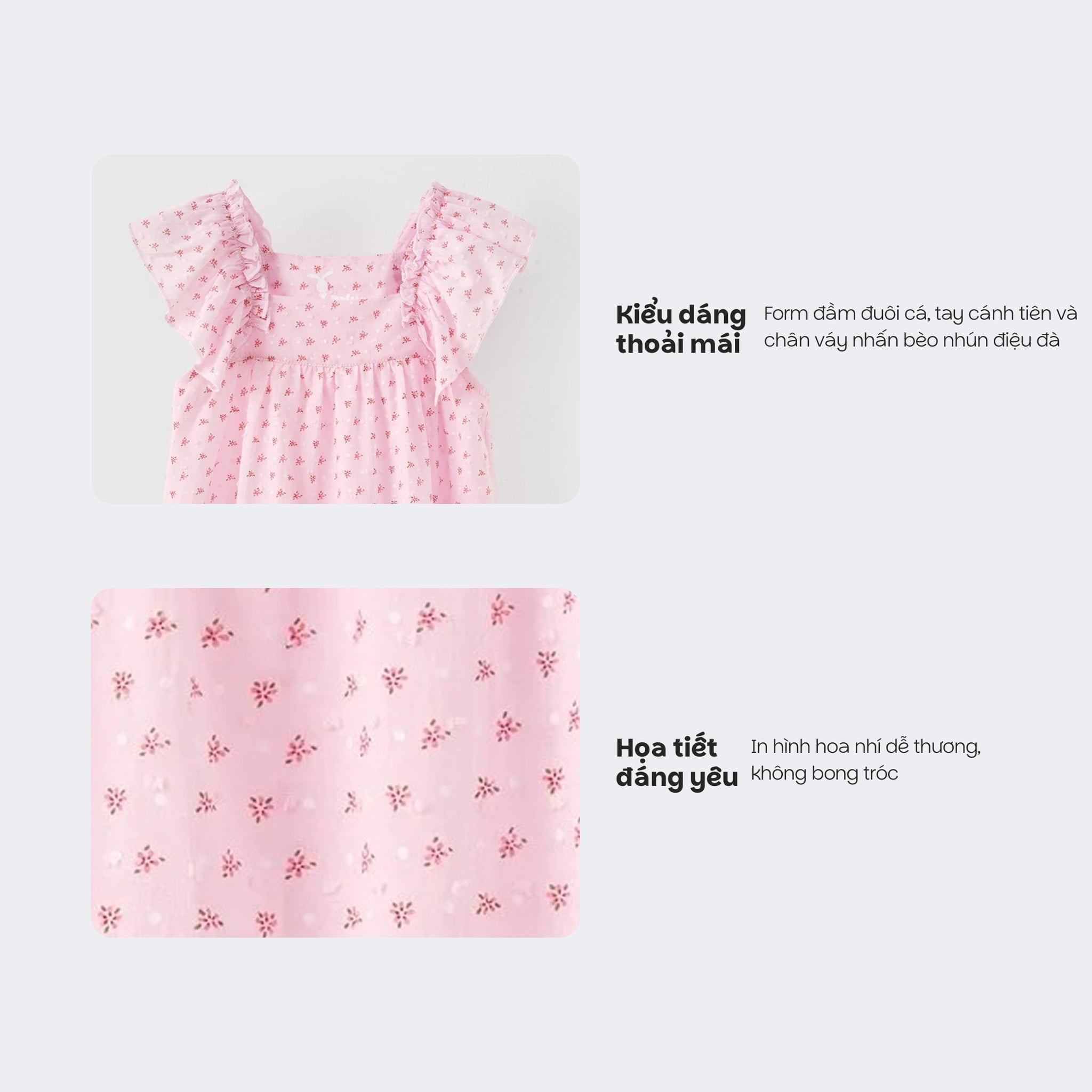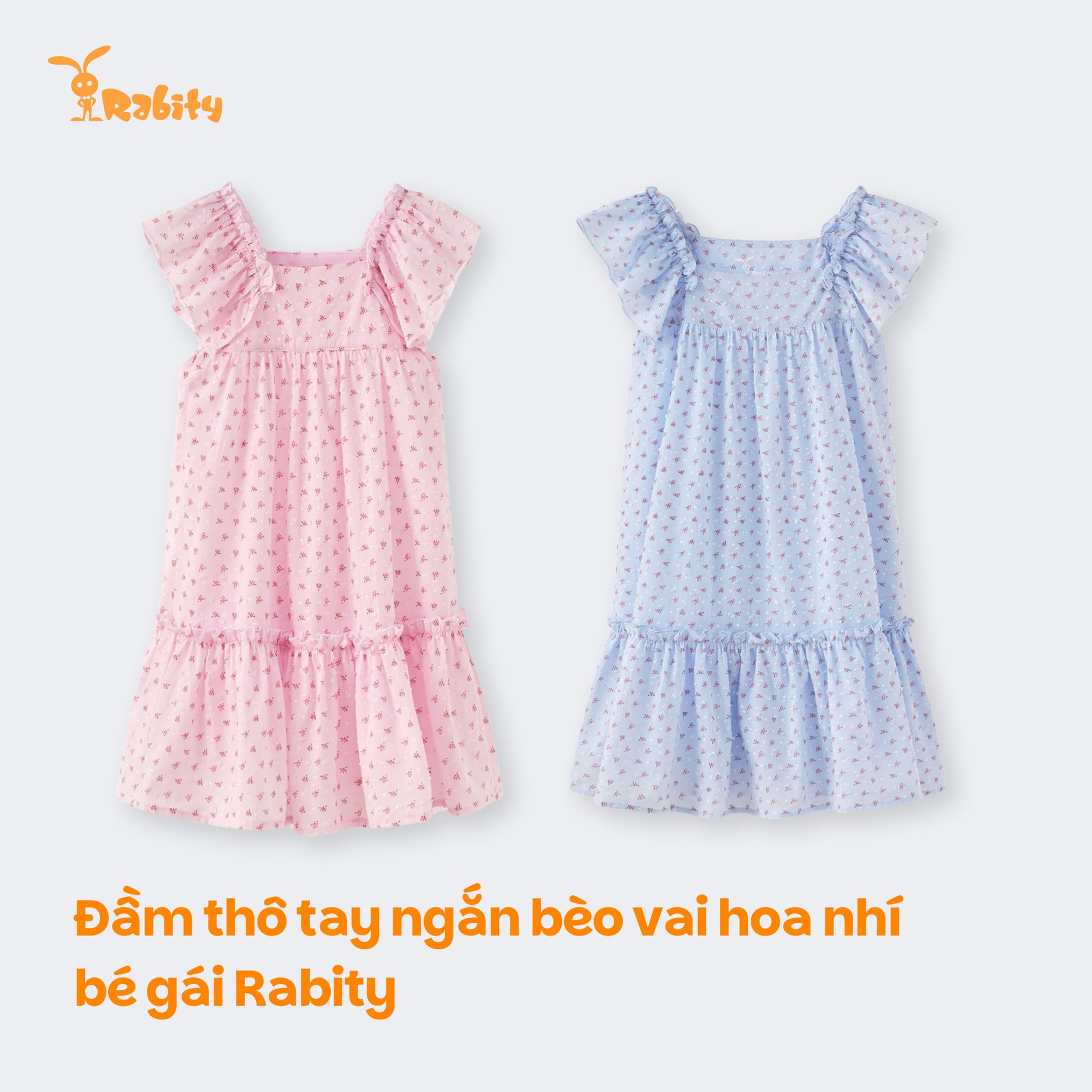 Đầm thô tay ngắn bèo vai hoa nhí bé gái Rabity 950.075