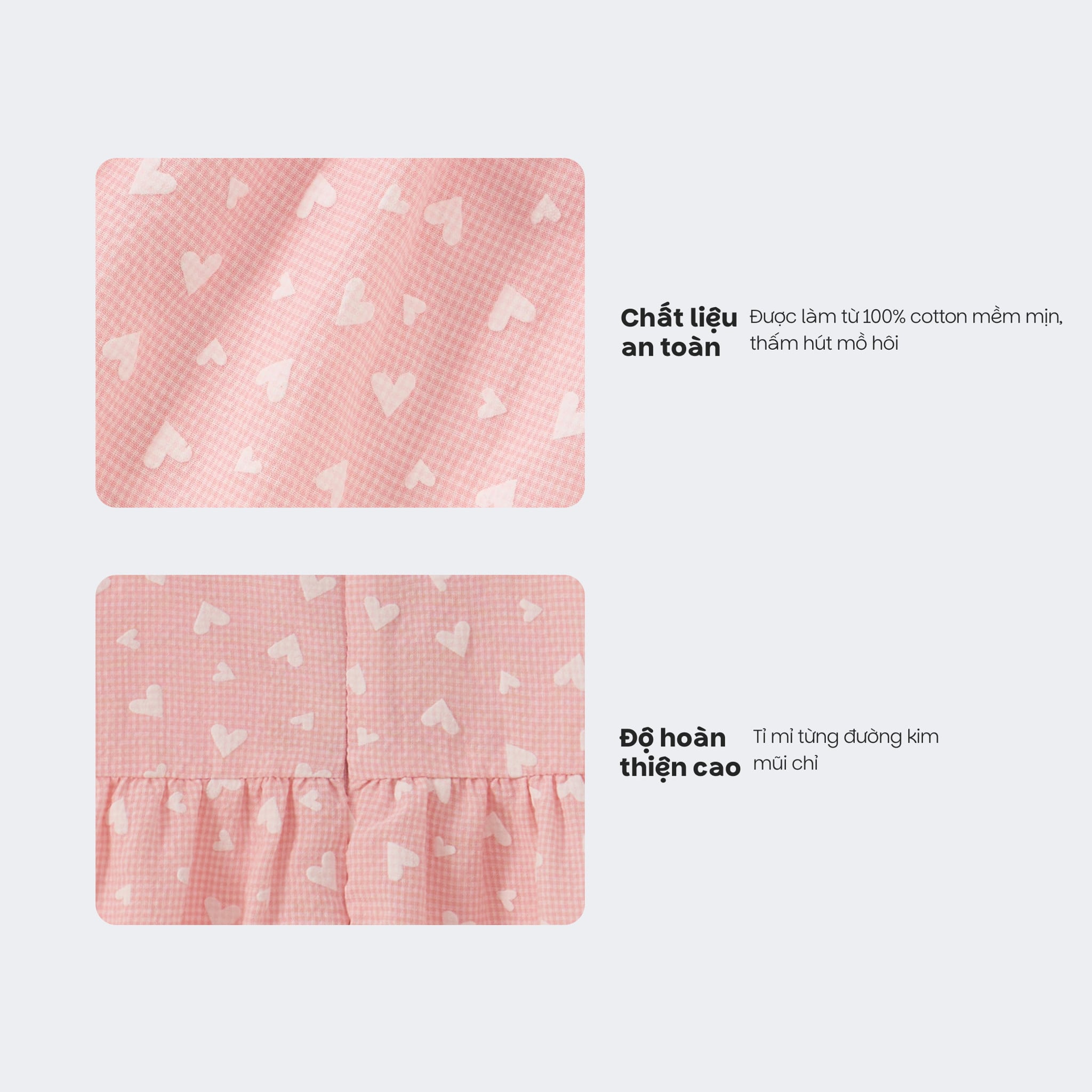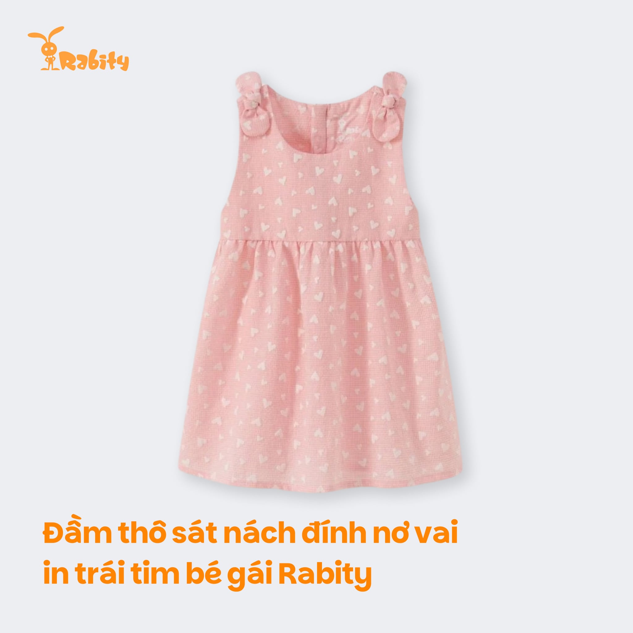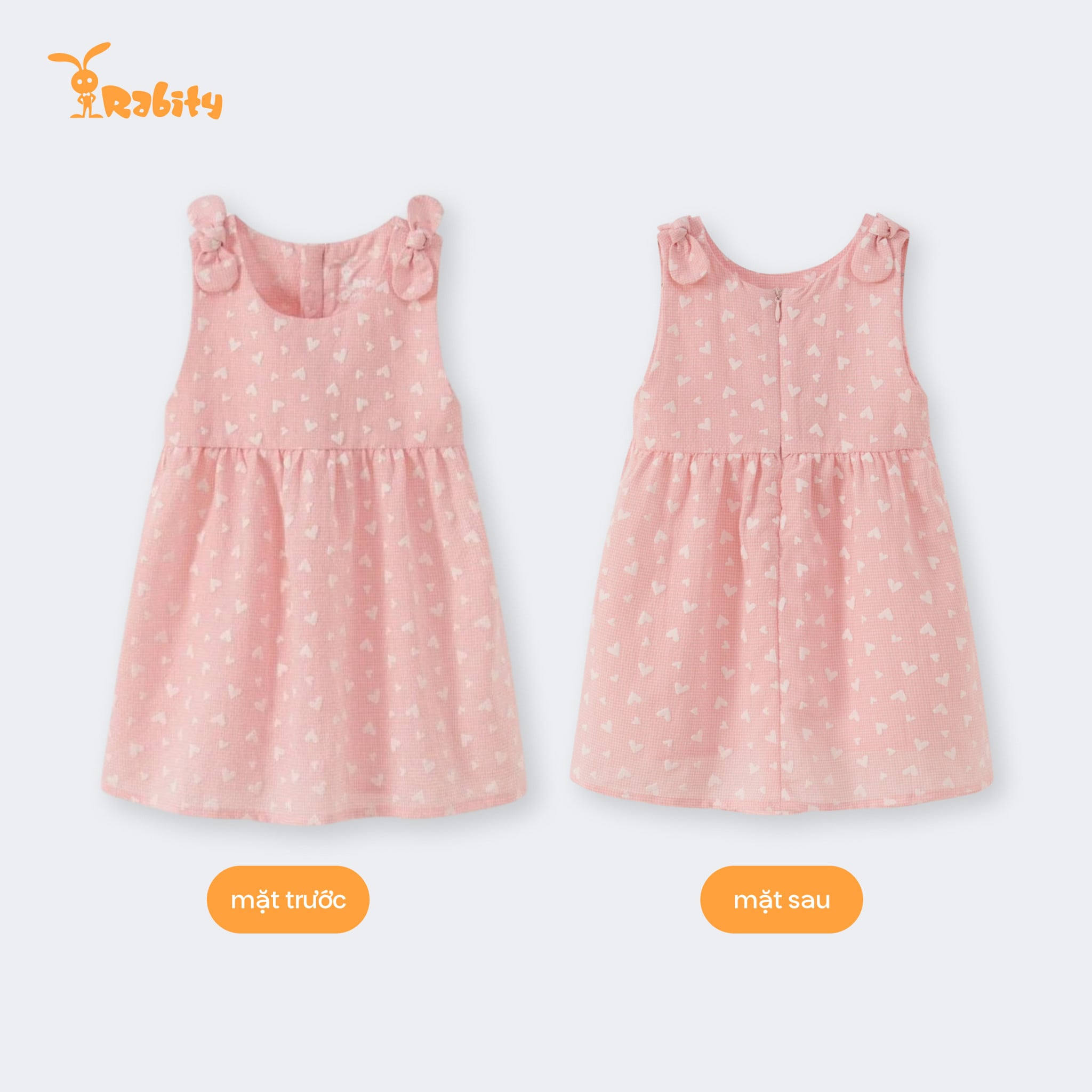 Đầm thô sát nách đính nơ vai in trái tim bé gái Rabity 952.006