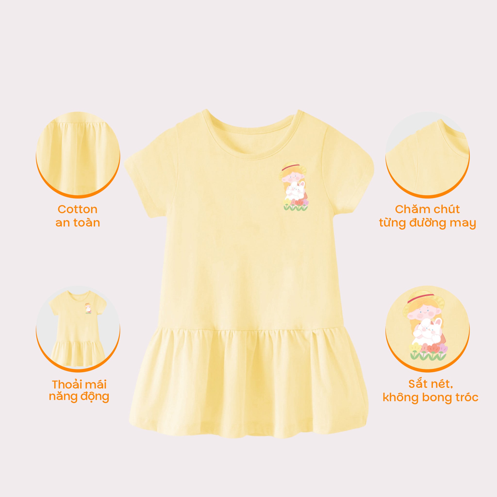 [Độc quyền Online] Đầm váy thun ngắn tay bé gái Rabity 950.904