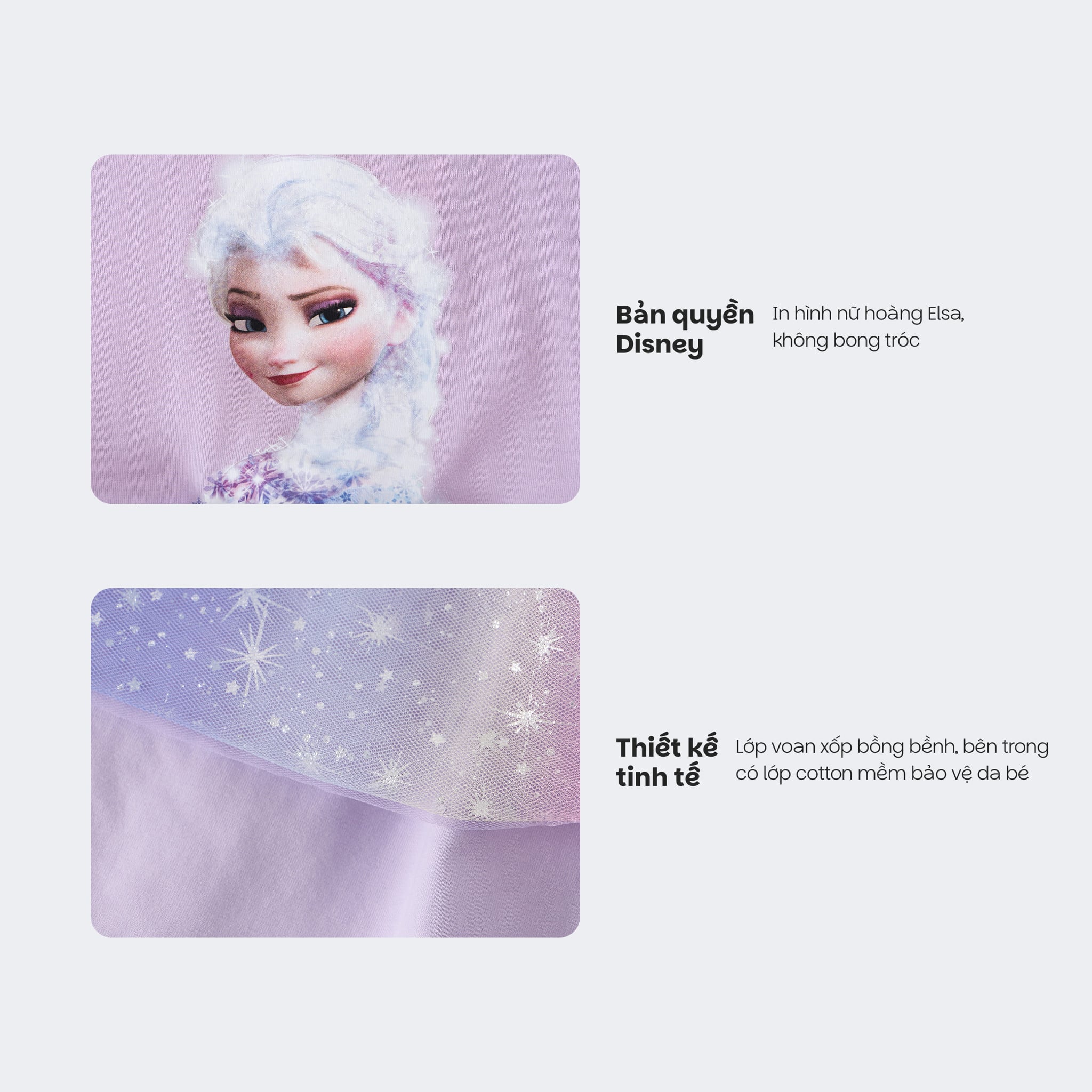 Hình in Elsa bản quyền sắc nét: Ngực áo được trang trí bằng hình in Nữ hoàng Elsa xinh đẹp, sắc nét với công nghệ in tiên tiến, đảm bảo bền màu và không gây cộm ngứa cho bé.