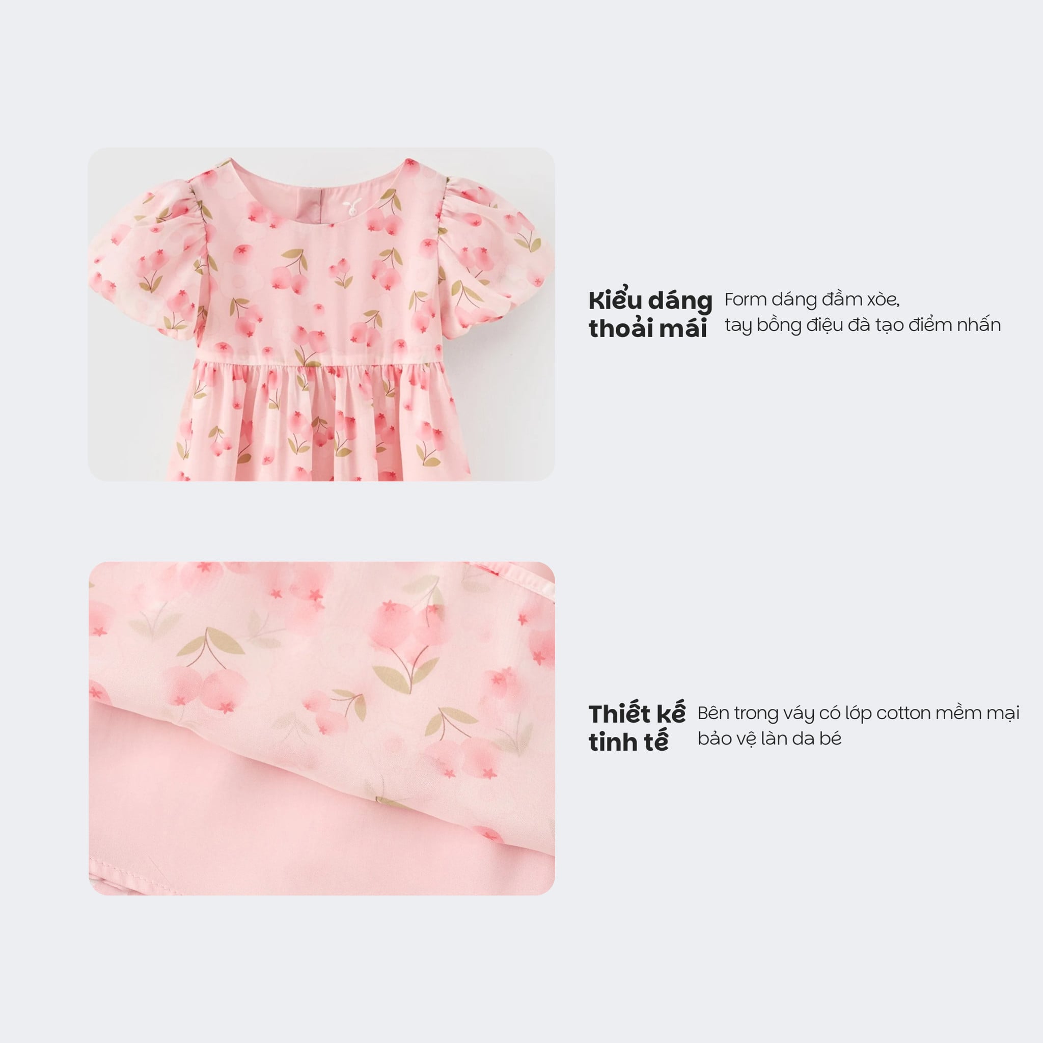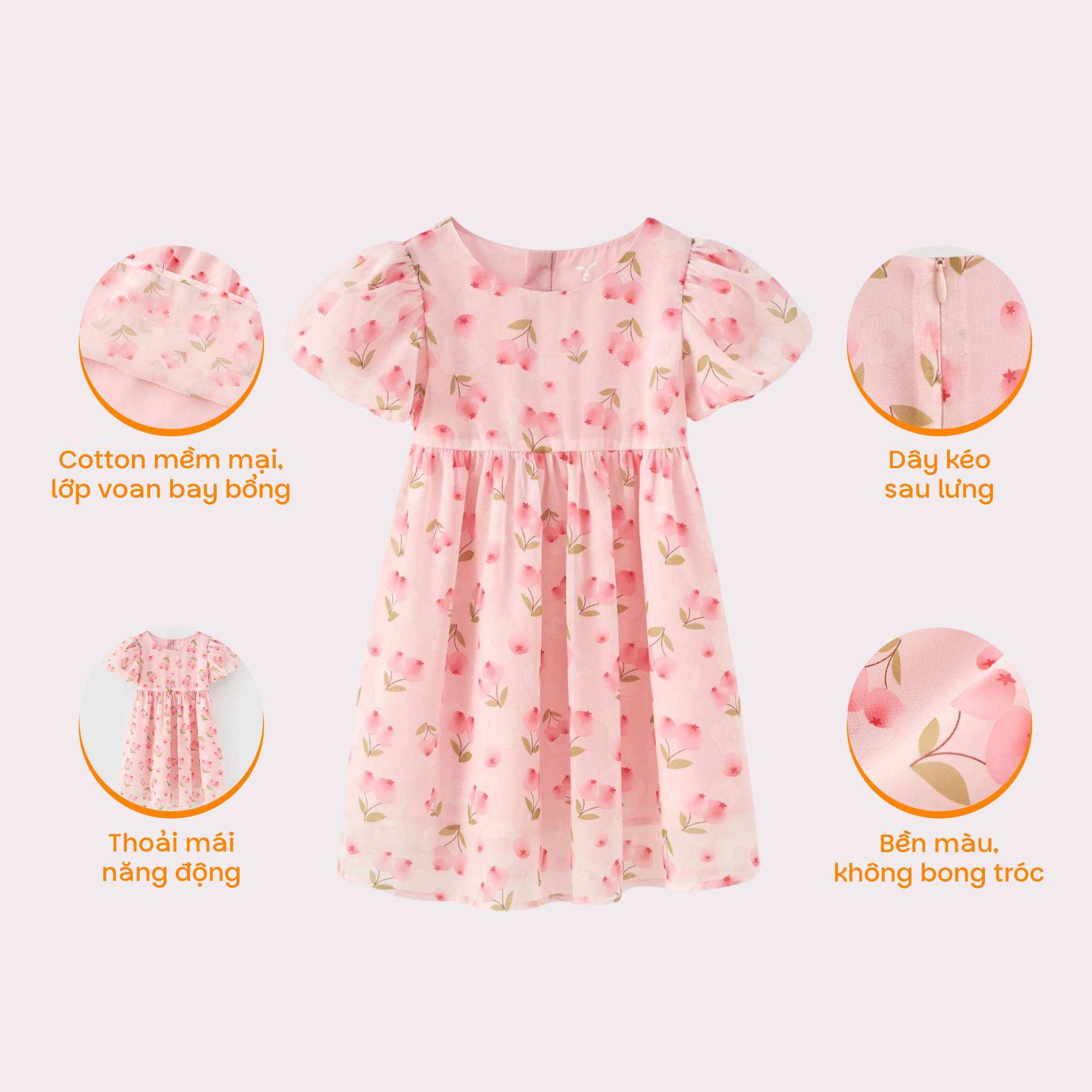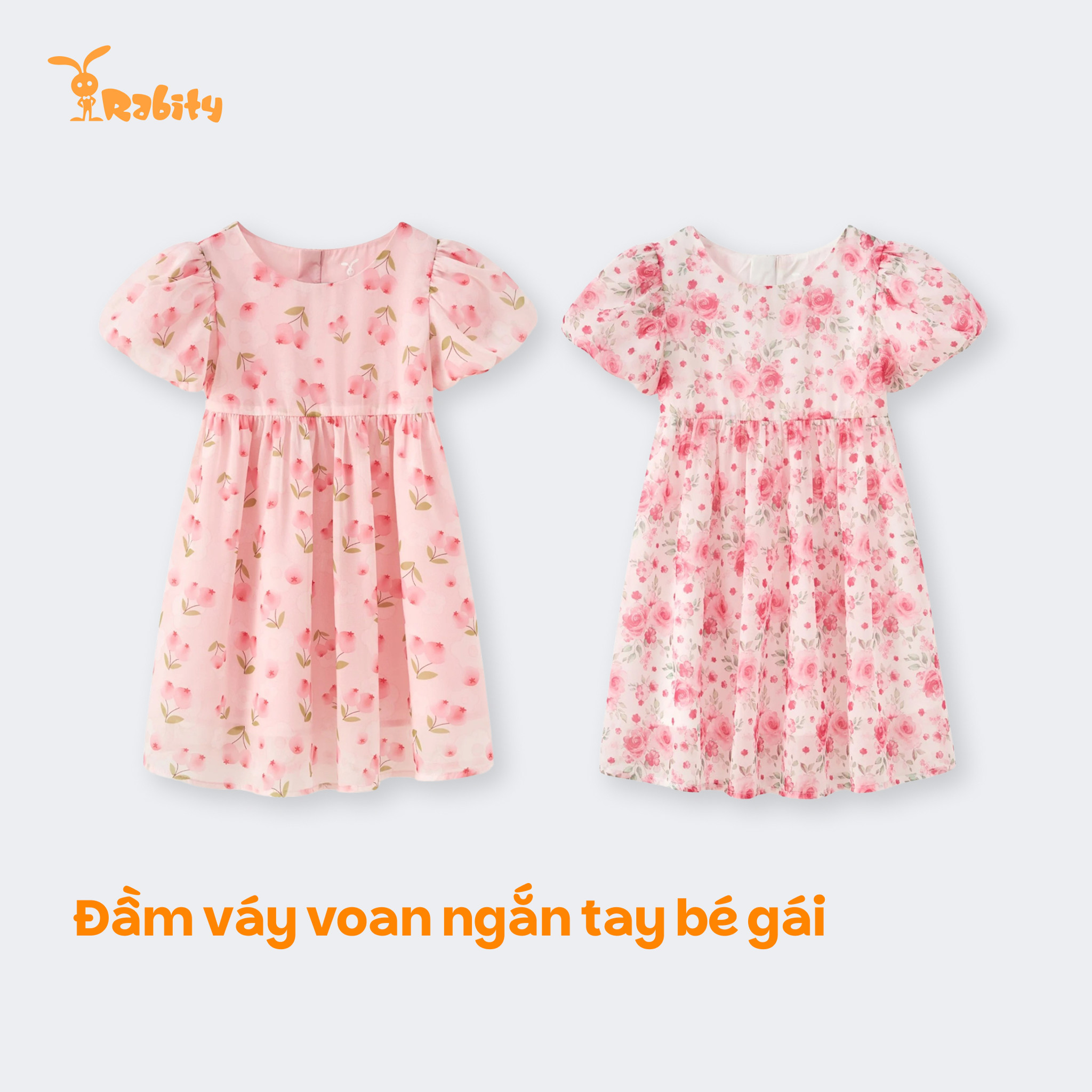 Đầm voan tay ngắn in hoa bé gái Rabity 950.061