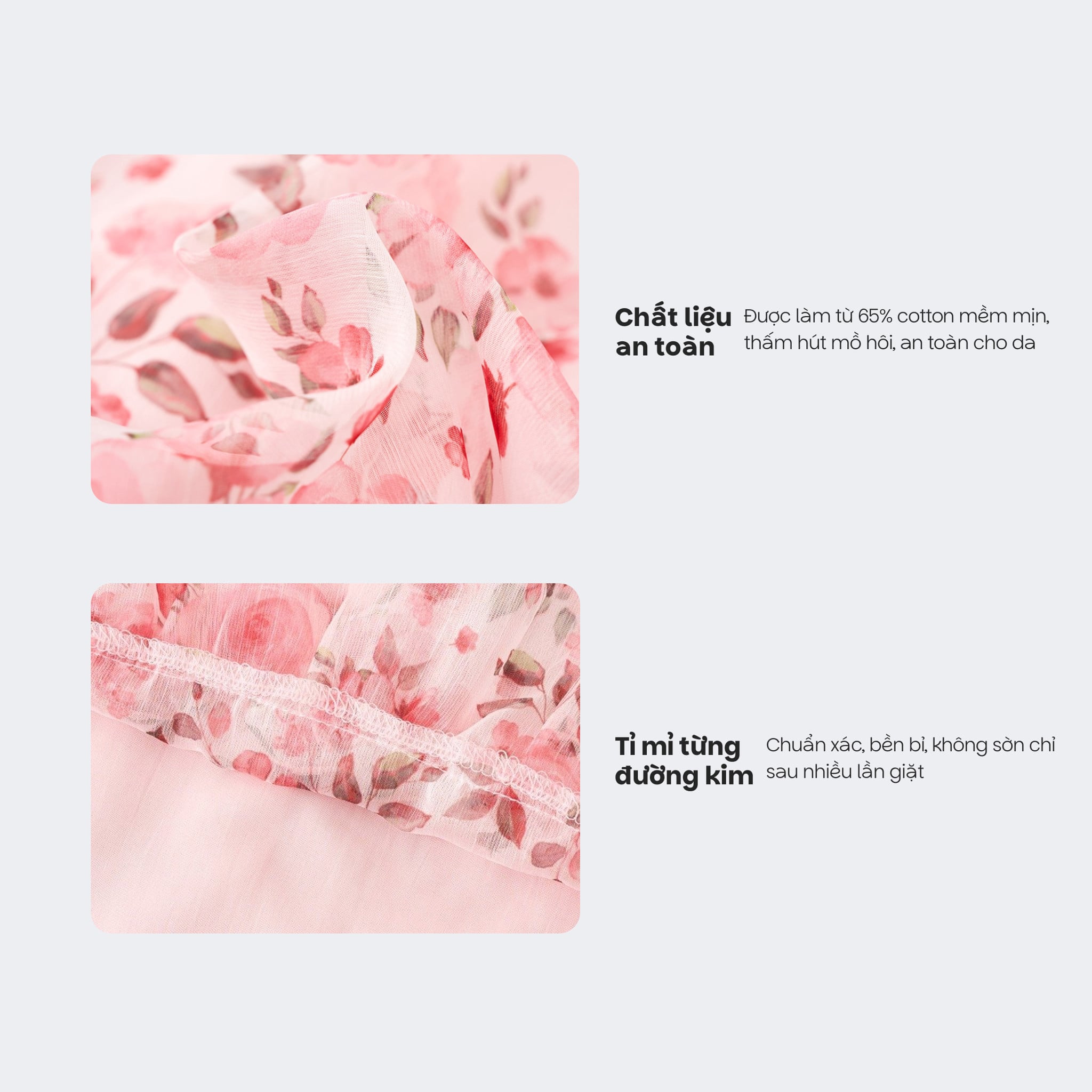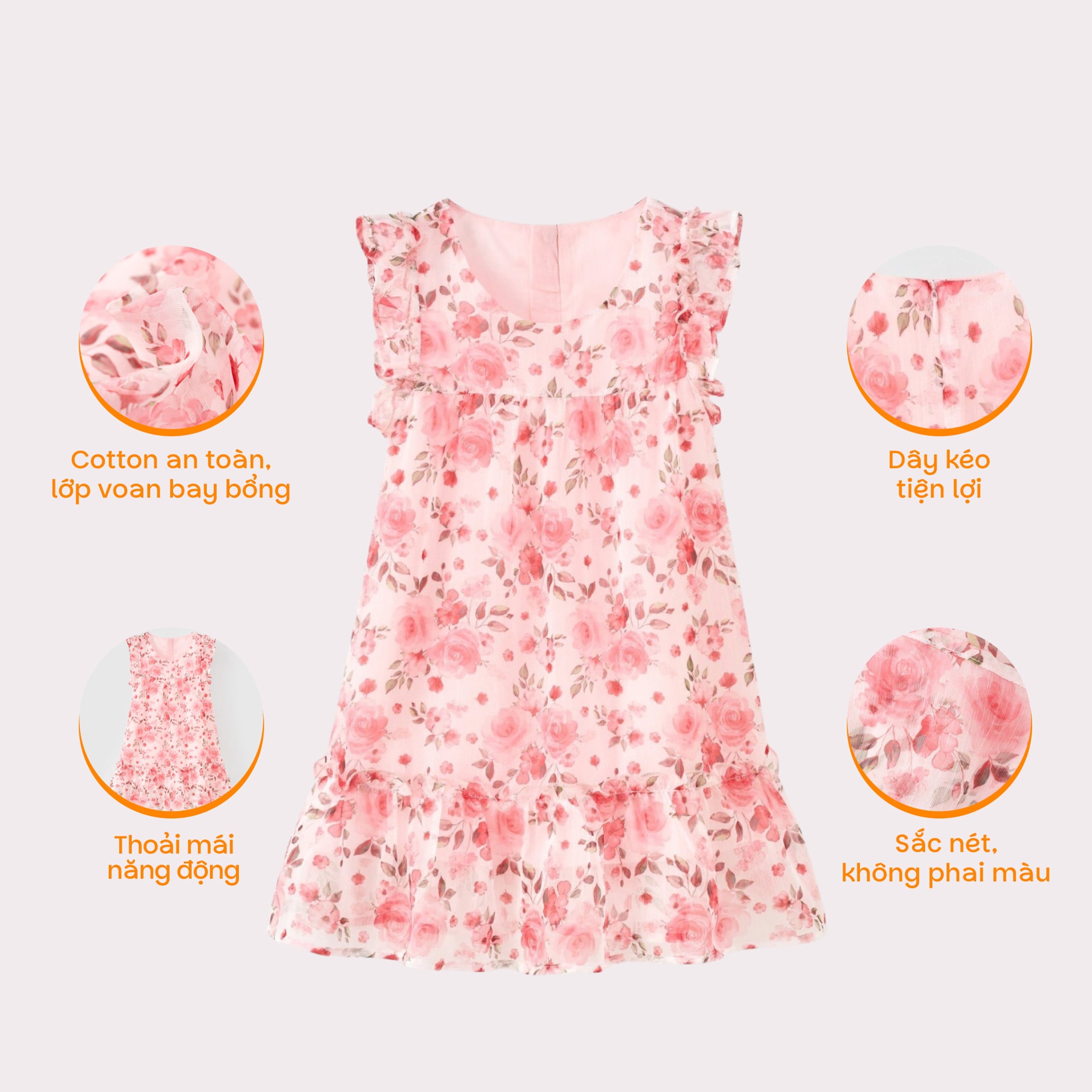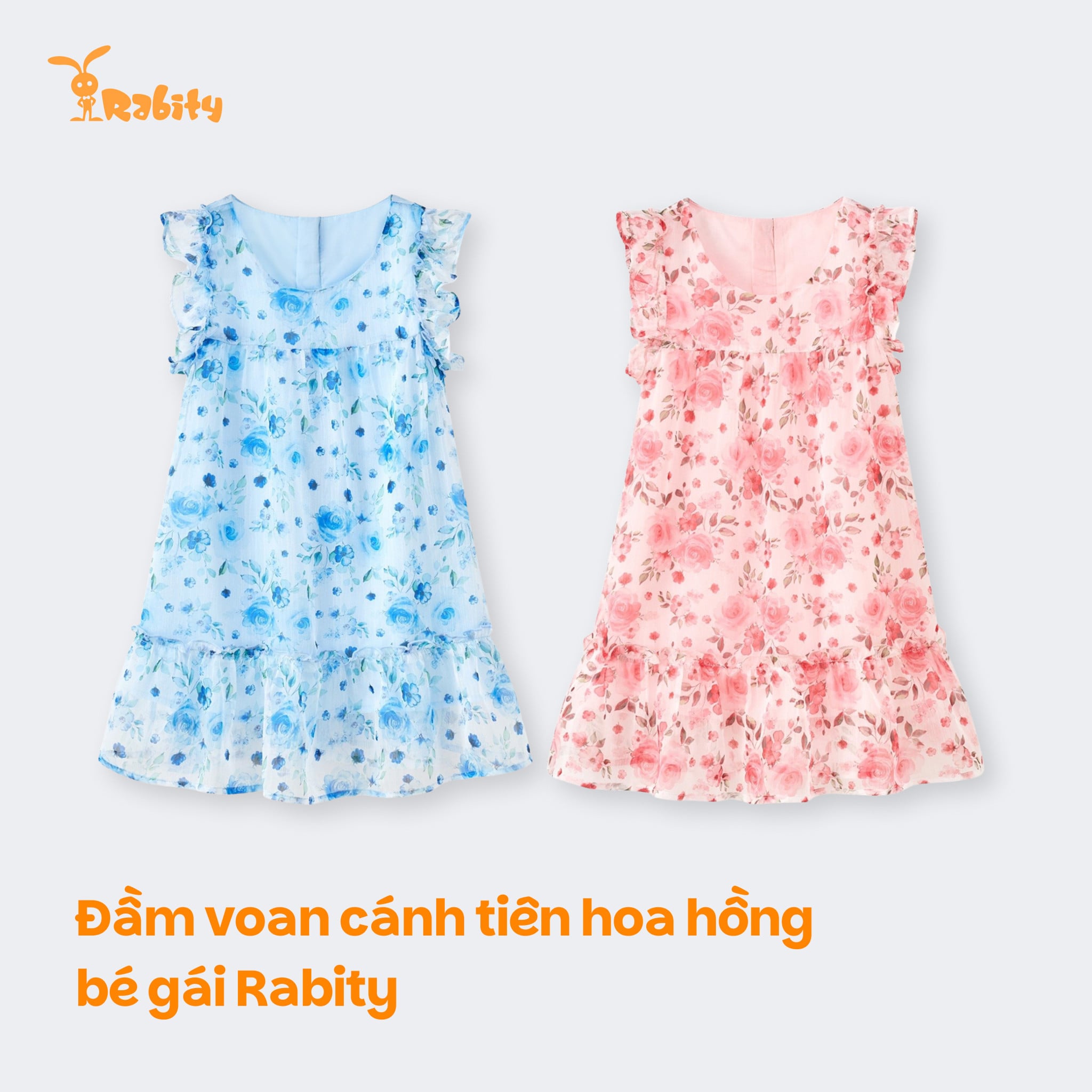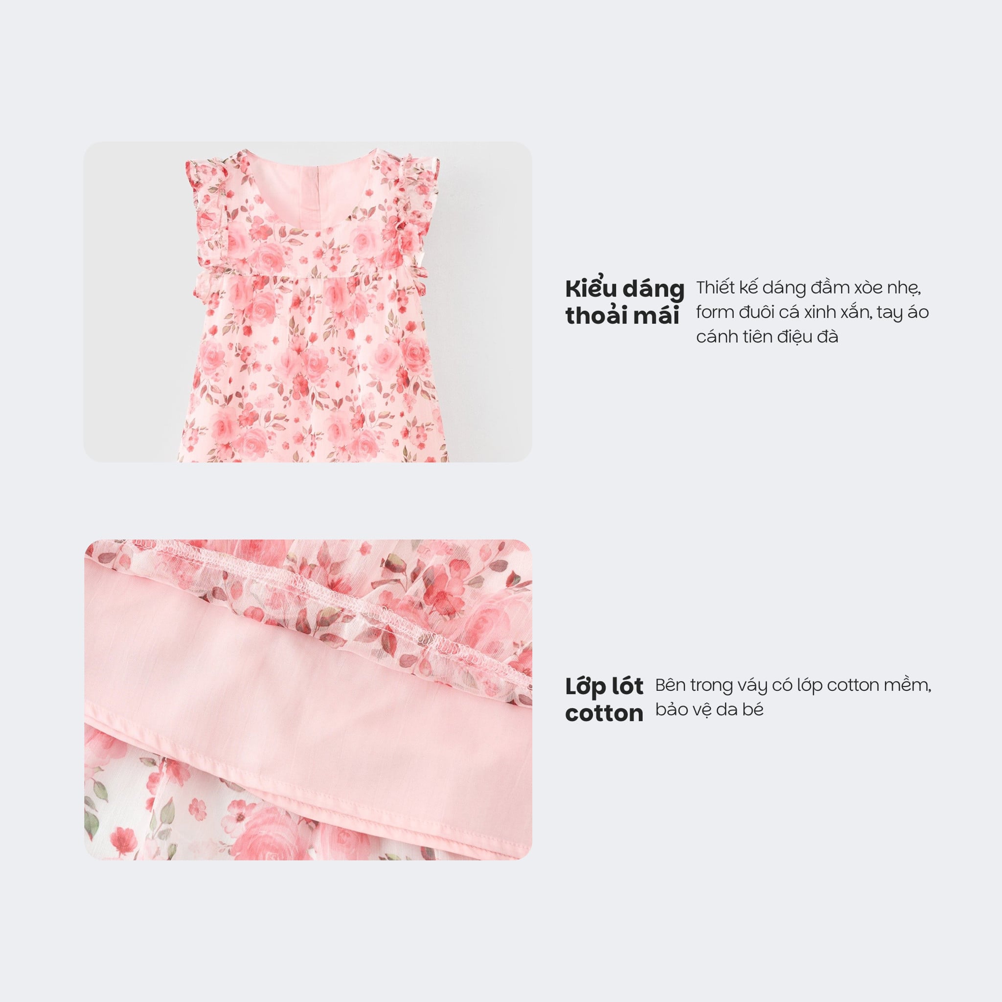 Đầm thun voan tay cánh tiên hoa hồng bé gái Rabity 950.090