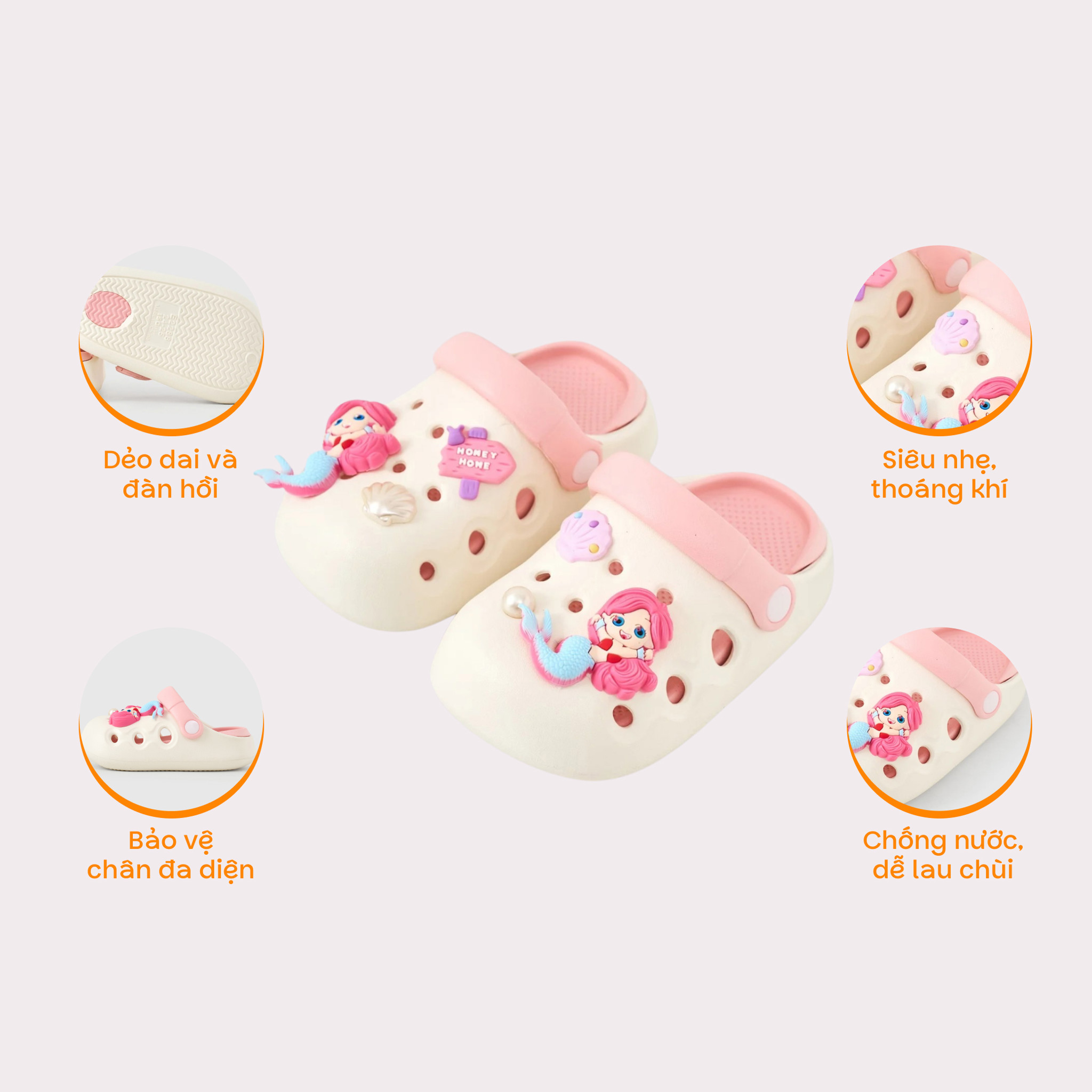 Dép sục chống trơn trượt nàng tiên cá bé gái Rabity 685.012