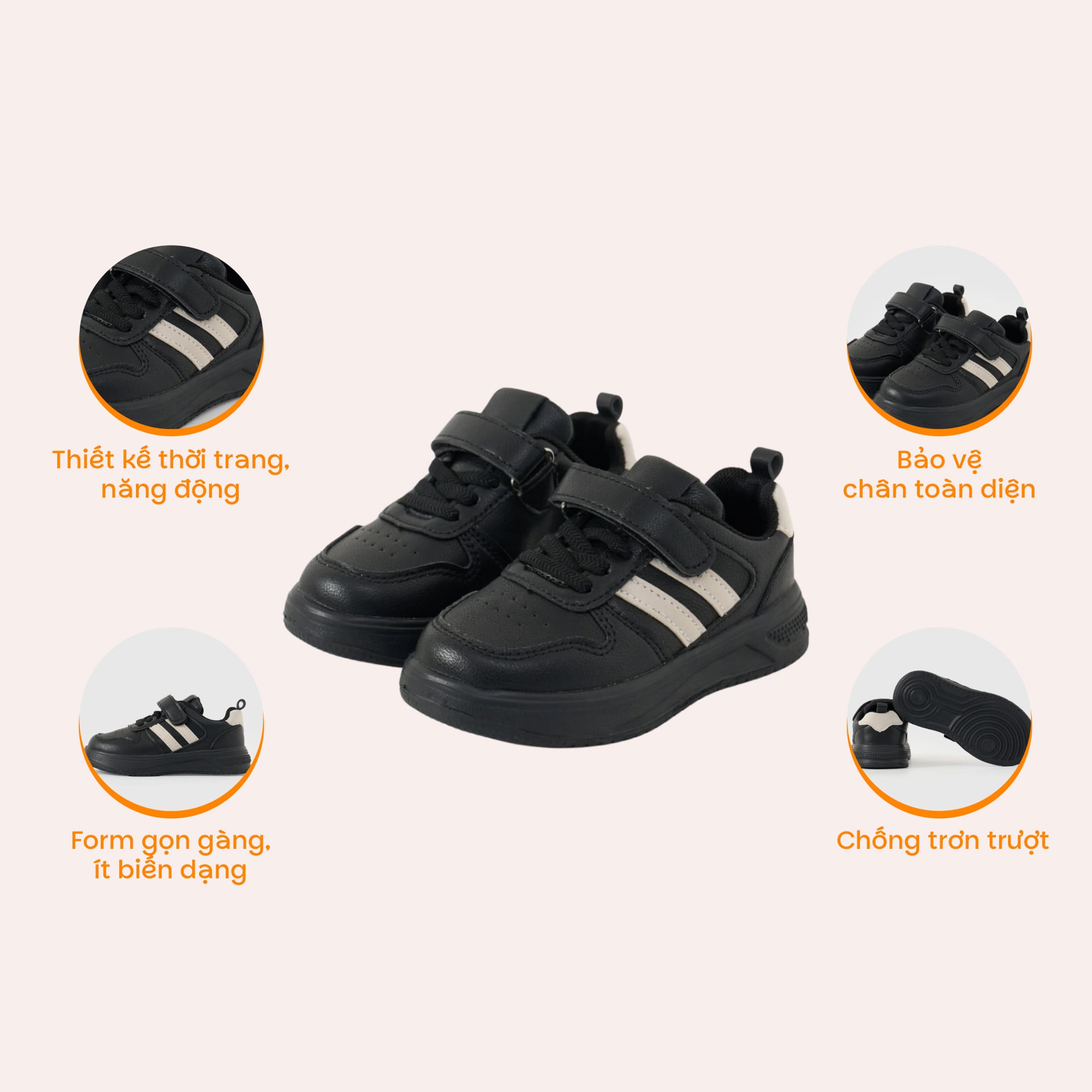 Giày thể thao sneaker quai dán chống trượt bé trai/bé gái Rabity 684.006