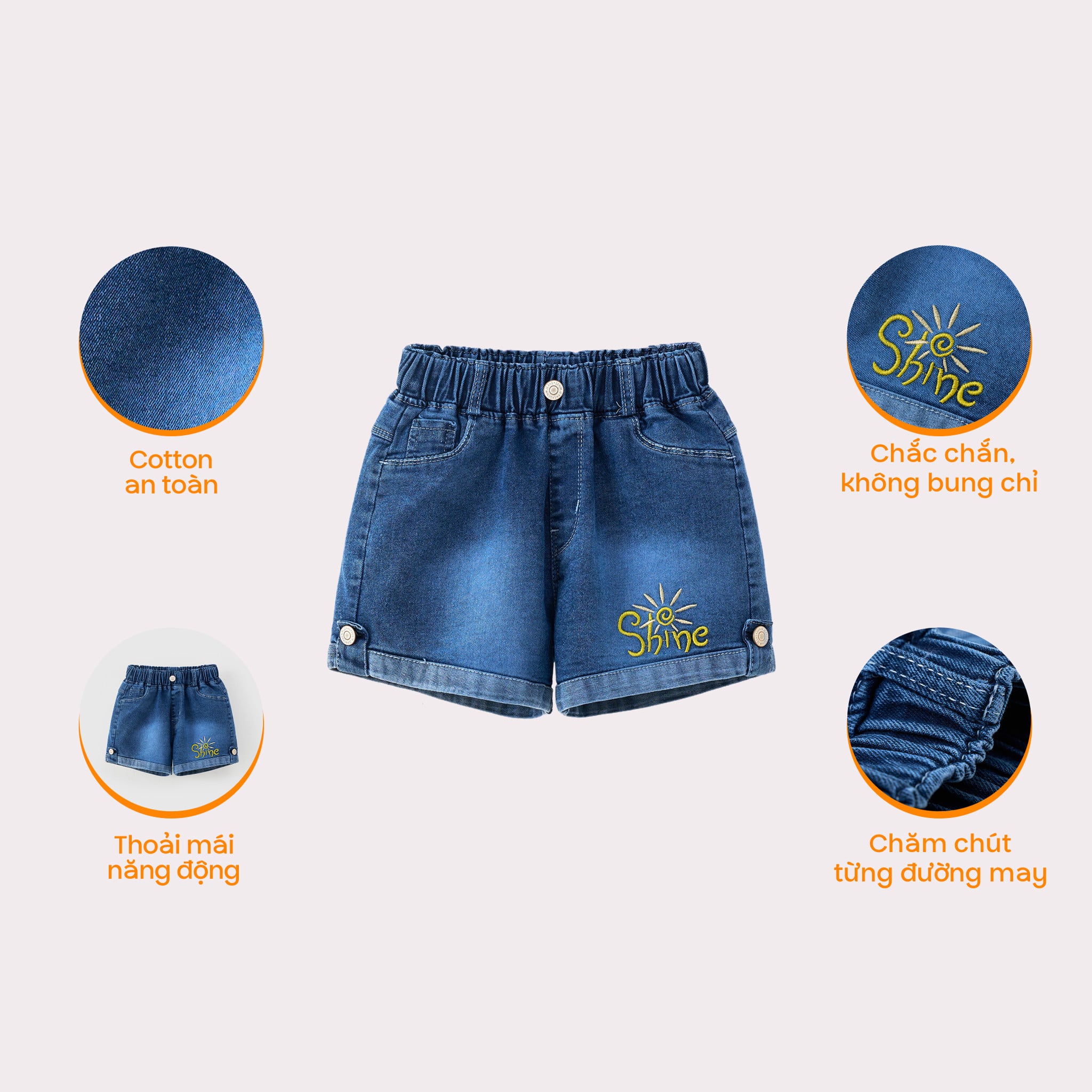 Quần short jeans lưng chun hoạ tiết toả nắng bé gái Rabity 931.018