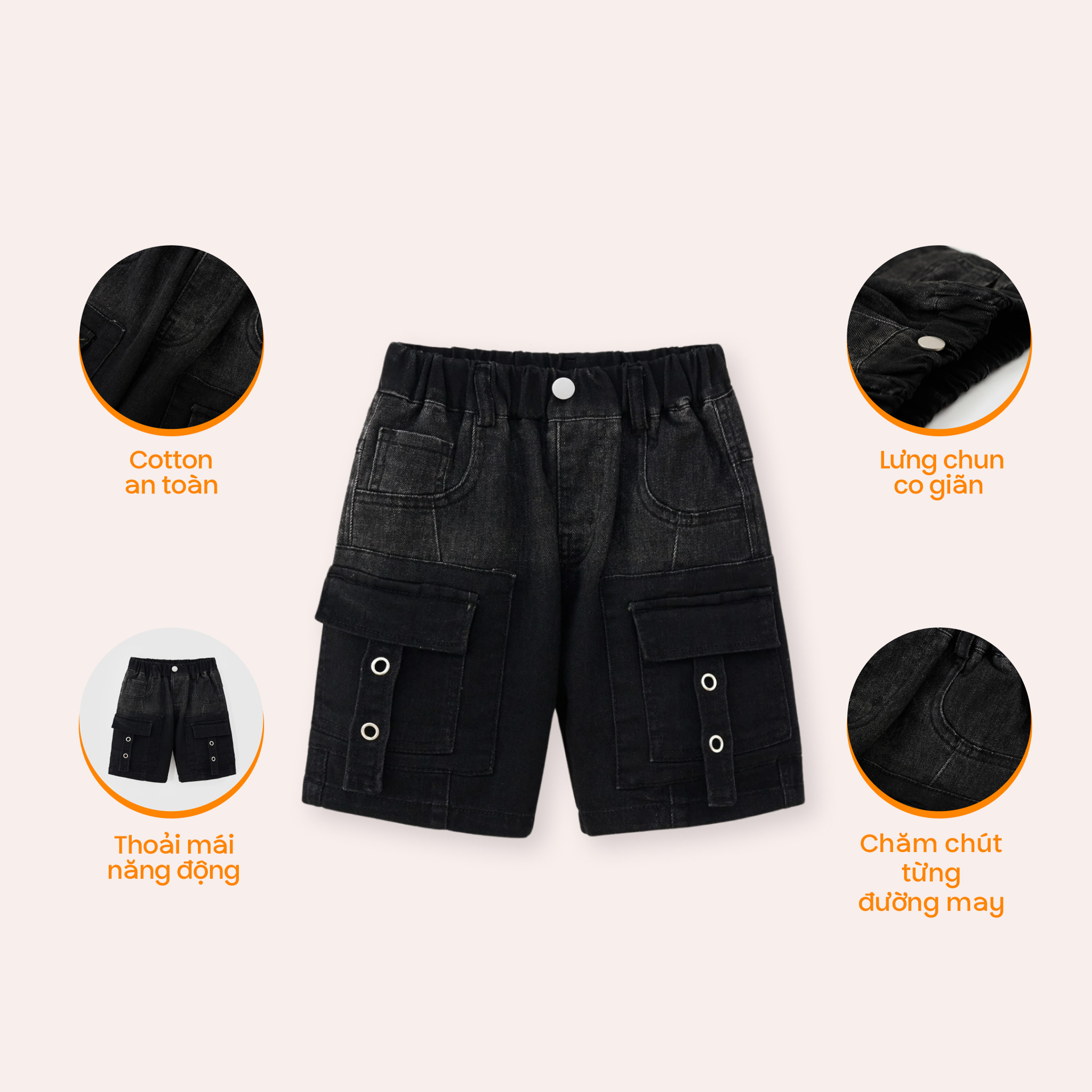 2. Vì sao ba mẹ nên chọn Quần short jean túi hộp Rabity?